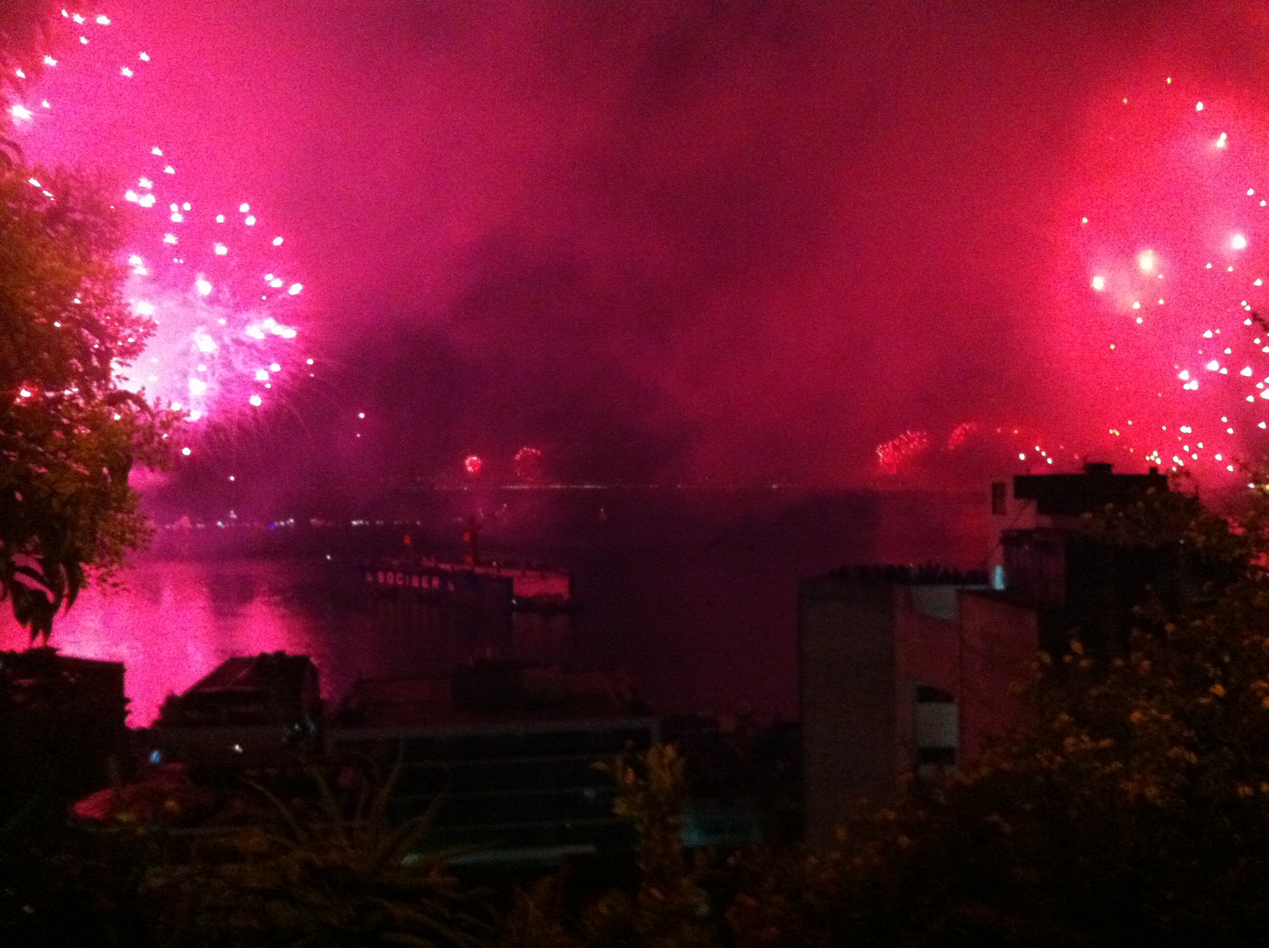 Everyone brought some food and at 9:00 p.m. we all meet up, ate and headed out to find a viewing spot now that people had already picked viewing spots hours before. With our spot, we waited sitting on the floor, conversing and eating (and they drank) until 1 hour before midnight when everything was unbearably crowded and we began to stand. At midnight all hugged, popped confetti, sprayed foam, sprayed champagne, drank, cheered and danced. Then 5 minutes after all the celebration started the fireworks started. A whole 30 minutes of fireworks right in front of us and all in unison all around the whole coast line…it was an incredible sight to see (except no wind eventually meant clouds of smoke. For example for the grand finale I only saw 3 fireworks during those booming 3 minutes with many fireworks). After we returned to her store, ate a bit and made our way back to the same spot to dance until our hearts desired. It was an amazing experience to see so many people in the streets, happy, dancing, singing, celebrating…anywhere there was music people stopped and danced, just enjoying the amazing atmosphere that night. This continued until the morning, even at 10 am when I finished my run there were still groups on the street drinking or returning home finally…I stayed out until 2 am as I got tired and bored from not moving from one same spot.