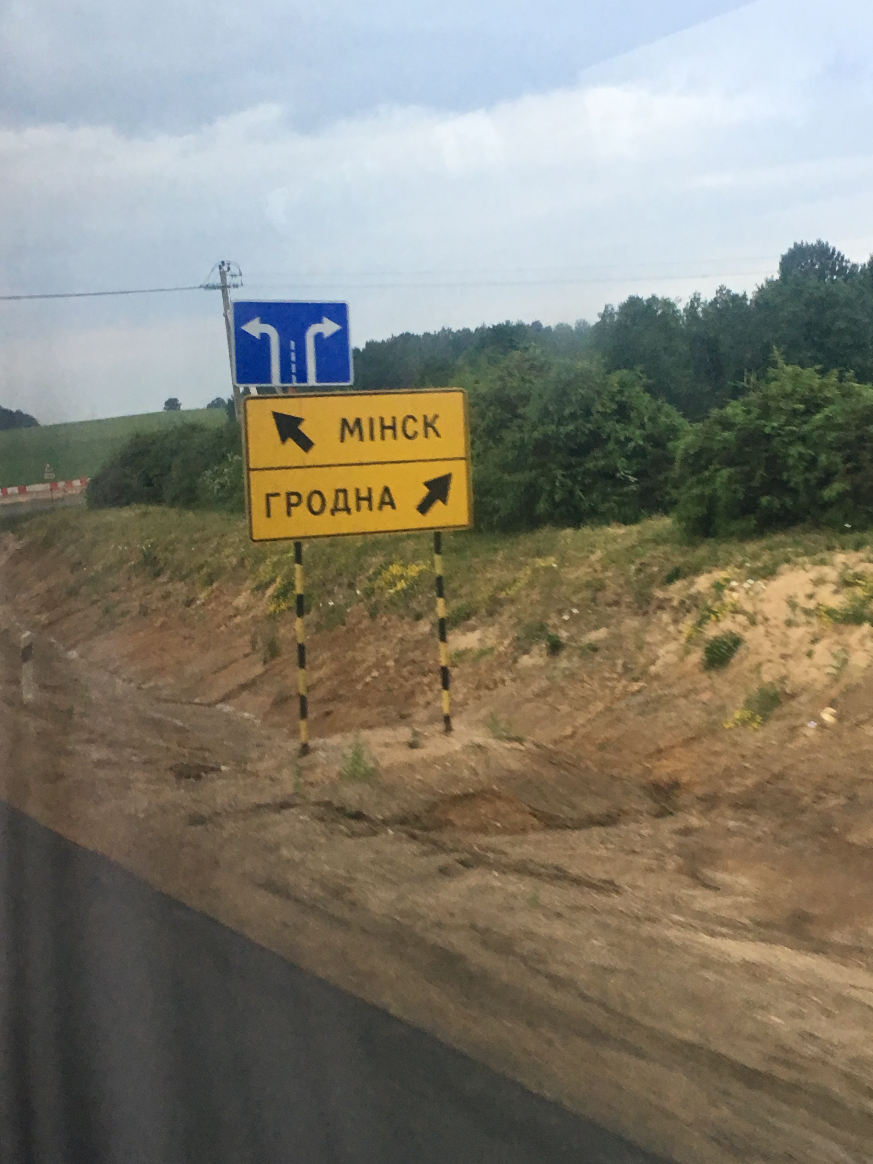 It was crazy, I had no clue what bus I just jumped on, no hotel or hostel reserved, no clue if there was a bathroom or internet on the bus, nothing but off I went. Turns out no wifi, no toilet…ha The bus ride was 4 hours, aka another bus ride added to the 1.5 hour journey from Kaunas…what was I thinking! Also turns out no one spoke English on the bus nor where I was going (nearly no one) and Belarus was full on Russian Cyrillic script (so no more reading either)!