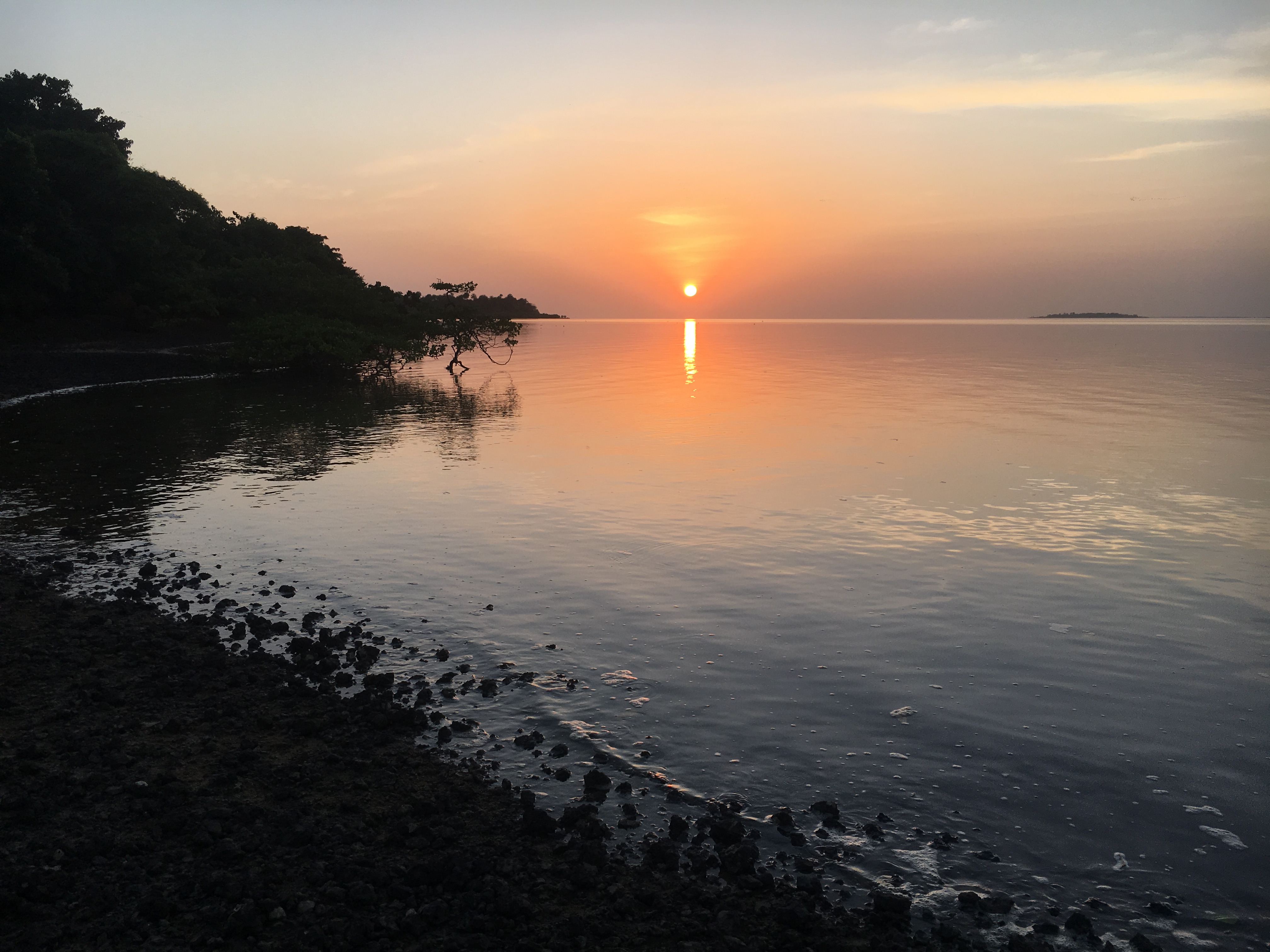 The following day I rented a bike and headed to the nearly secluded beach on the opposite side of the island (Praia de Bruce). Bike 5,000 cfa for the day – ride 13 miles to the neverending clean beach all for you, priceless ha ha. Since it was so ‘far away’ I spent the whole day there…2 hotels exist there so lunch and water available (check but it’s definitely open in season)…water was warm and there were a few makeshift beach huts so cooling and chilling was definitely possible. The water can be swam in but in the archipelago you must shuffle your feet to enter to avoid stings from rays that hide in the muddy floor. The ride concluded on the same beach I saw the sunset the night before (yes, so amazing I returned)…watching possible drug related flights to and from the airport, the nightly catch arriving to what seemed to be a millionaire’s house in front of the beach with 2 baobob trees (likely related to drugs too). I say this because Guinea is known as the gateway for drug traffic from Latam to Europe (specifically the islands)…being a corrupt, poor country and closest to S. America…drugs seem to enter without problem or local attention since money tends to rule in a corrupt world 😦 and doesn’t help the actual residents at all. Meanwhile, the sunset was spectacular every night reflecting on the calmest ocean I think I have ever seen!