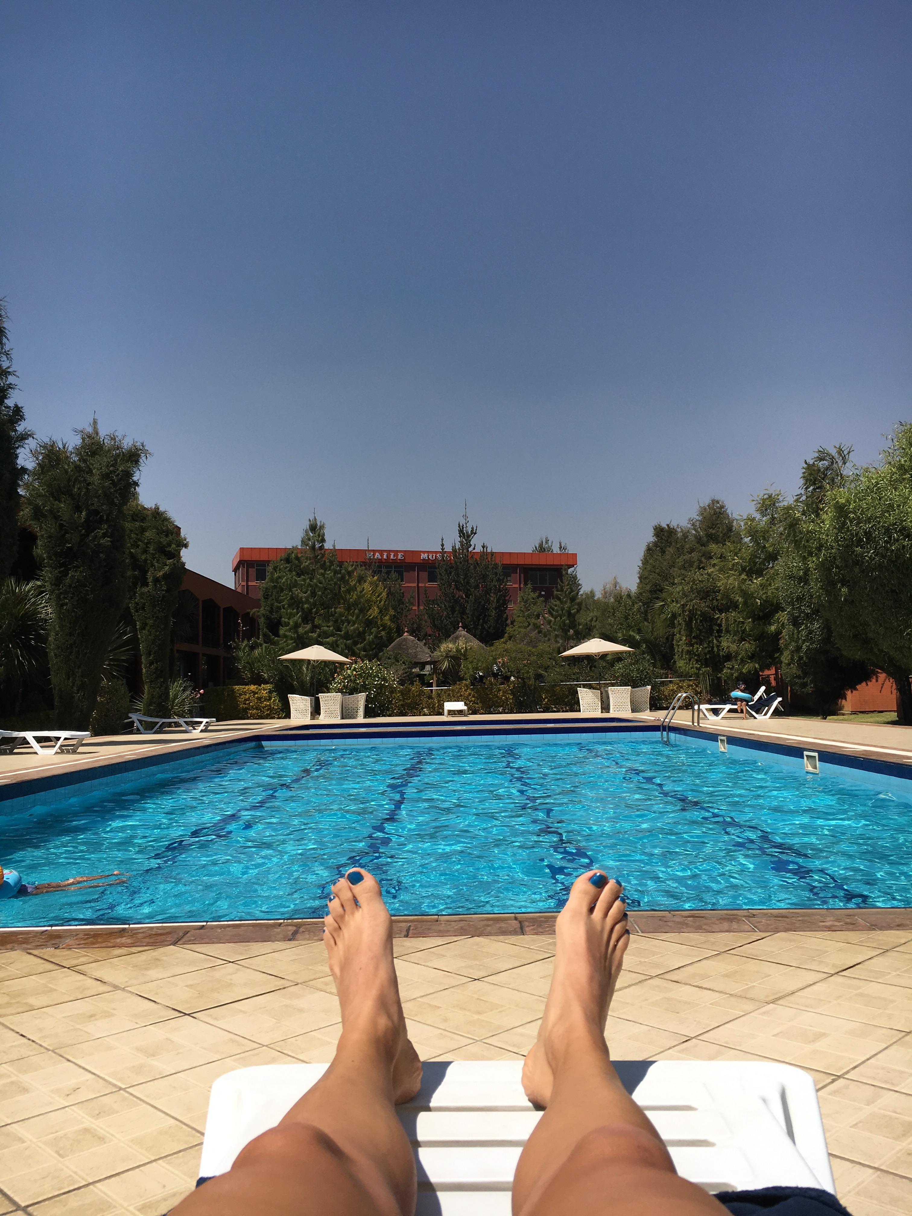 Instead I waited until it warmed up a bit and headed to Yaya Village to swim laps. I left before 11 am. The pool was clean, so exciting after all my African pool experiences…usually you pay to use it (also they have a nice gym there) but they thought I was a guest so I went with it. I believe the cost is about 150 birr (4.5$).