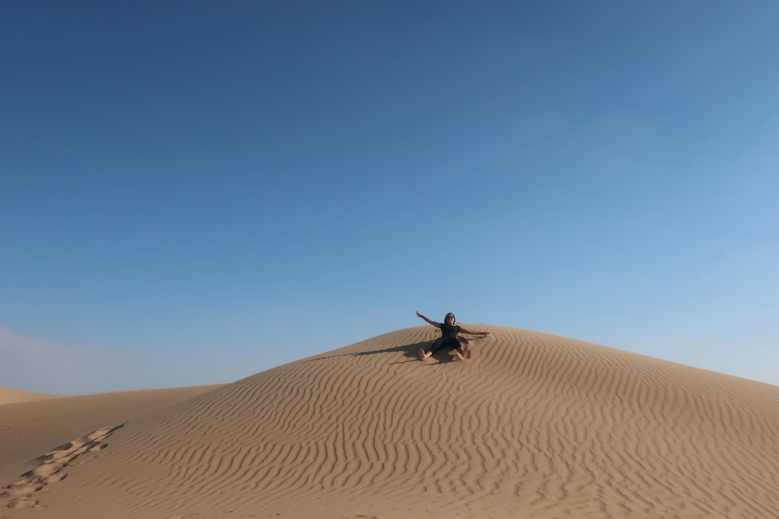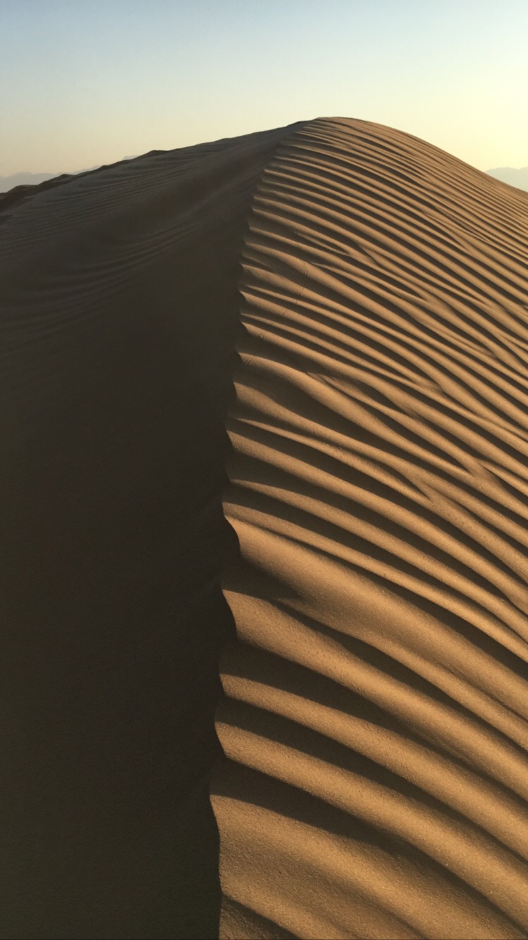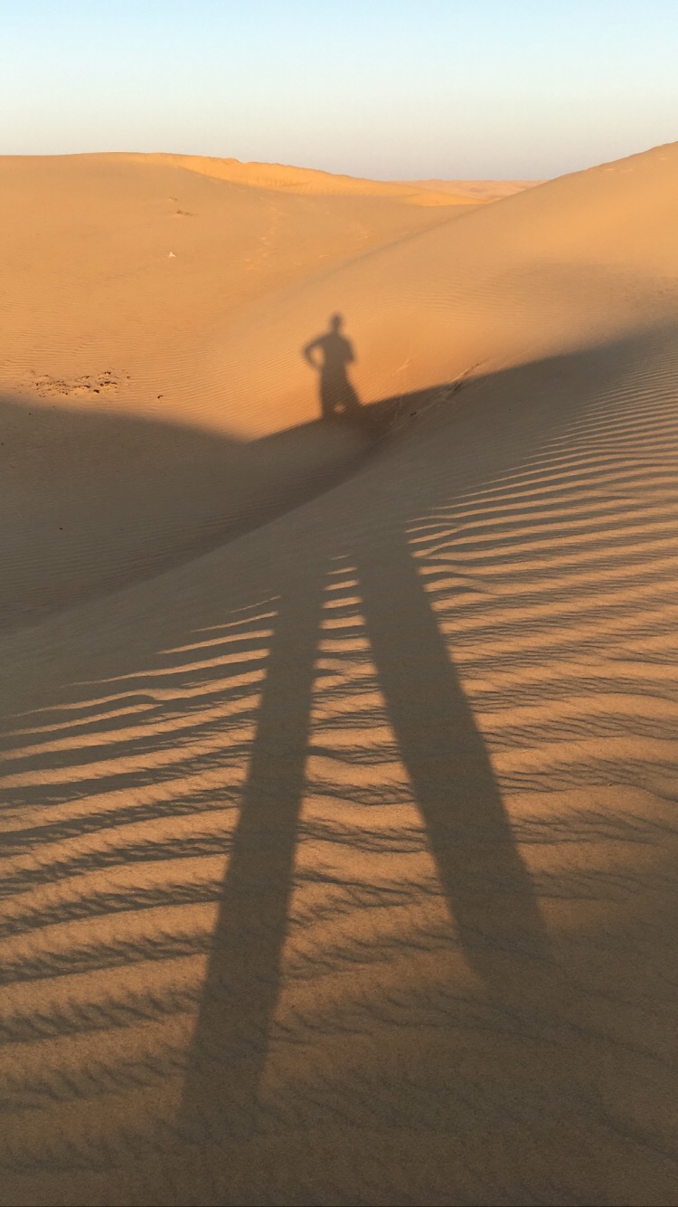 These dunes were red, golden and massive. I ran up one…well 25 meters (15 meters is vertical but the actual distance walking up is maybe 200m…add another 100m for the loss of distance with each step lol) then a rest…huff puff and again running, repeat until I was on top of them and the road, cars and camel tracks all disappeared… I had the place all to myself. I watched the sun slowly get eaten by the dunes on the opposite side of the horizon but left before it was completely gone since he was waiting in the car (otherwise I would have stayed for a long time). All was good because the cold desert was creeping upon us so I headed down, of course joyfully running down the massive dunes…some places soft while others sturdy…one never knows what you will get with each step at the top but the actual slope down was as soft as can be! We stayed a bit longer to watch the stars from another spot on top of the dunes then called it good. Leaving with a glorious hovercraft type feeling (what I imagine that would feel like floating on air across a surface) back through the sandy road (felt like this because they take air out of their tires before entering the dunes for more traction and comfort too…we do the same in cycling).