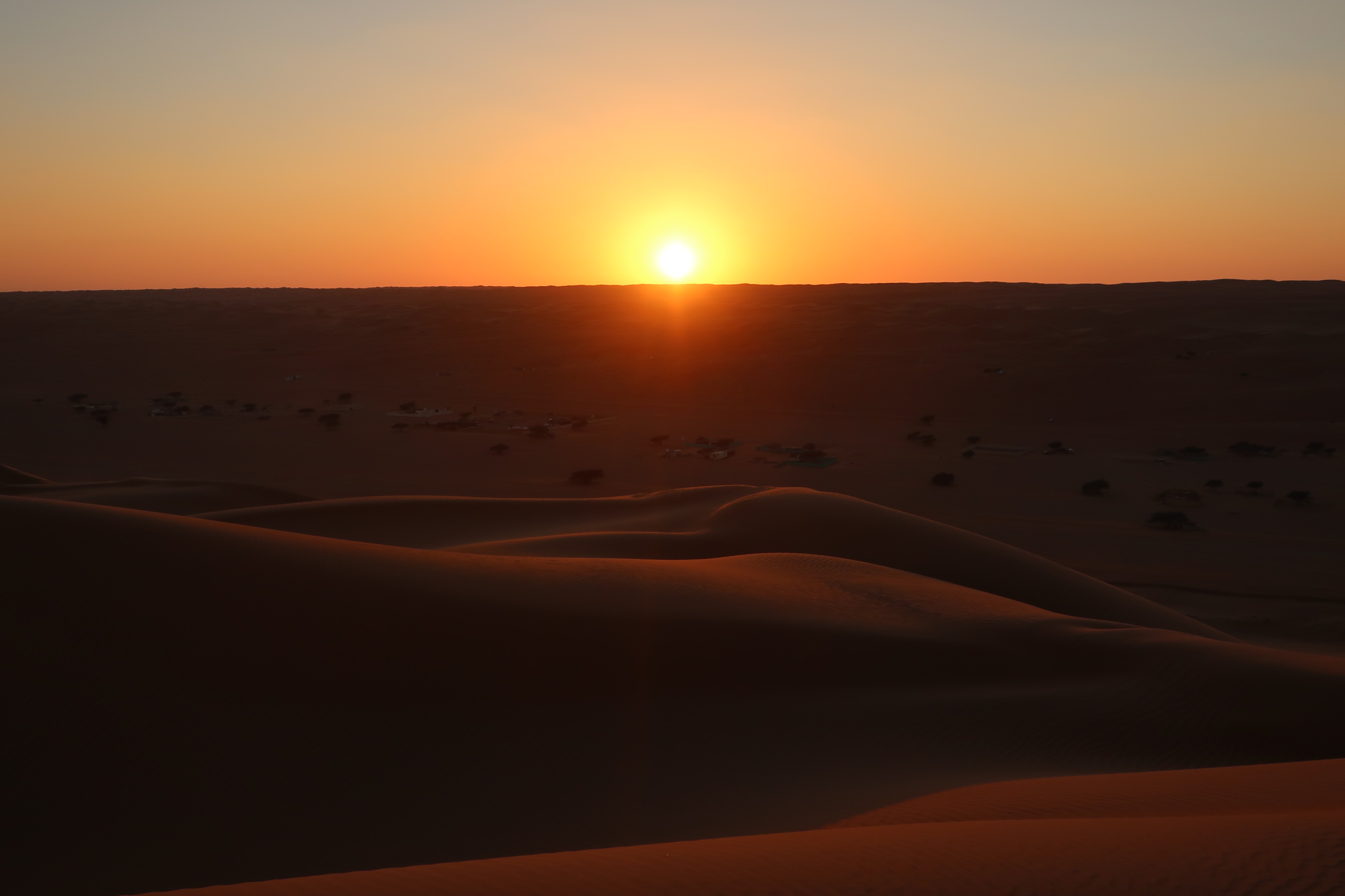 Day 2 was Desert time for me! It was one of the top things I wanted to do in Oman actually since I have never visited any real desert sand dunes. I didn’t rent a 4×4 so I couldn’t actually enter the desert but found a few spots to see, walk, camp etc among them. I chose to camp at Al Reem Desert camp, not cheap but I splurged and was happy dinner, breakfast and all the tea and dates you wanted were included. The tent was nice…more of glamping, food good, bonfire and guests fun but the camp definitely isn’t on or near dunes except those surrounding the camp which was upsetting since before arriving I was literally a town over climbing real dunes that were amazing…expectation vs. reality. Such a disappointing desert camp (even if accessible by car) that I returned to the actual dunes 15 minutes drive down the road for sunrise….Besides these dunes I was later able to enter the real big ones with 15m high inclines the next day with a couchsurfer I met along my journey. I wasn’t planning on surfing but in Sur I met a guy while in my car who came up to me and after chatting a bit he invited me to join him for coffee (Omanis are very friendly people btw). He happened to be a couchsurfer and he recommended a fellow surfer where I was headed so I actually ended up staying a night with him unexpectedly (I thought I would just do lunch then be on my way). After lunch he took me up to see the town from above…mountain desert oasis’ with white houses and date palms dotted the area…and from there we decided to head to the dunes for sunset…he has a 4×4…so I stayed, and could have stayed more days…but again the time I had was just too short 😦