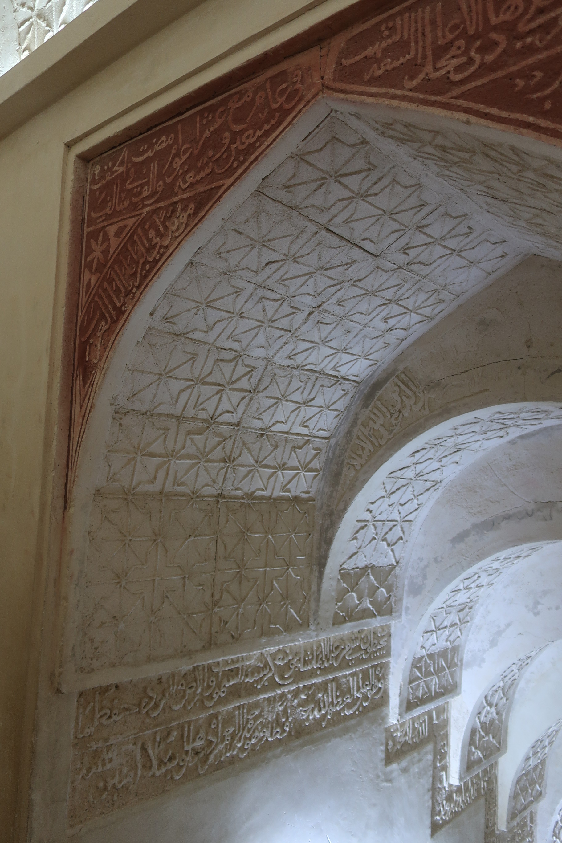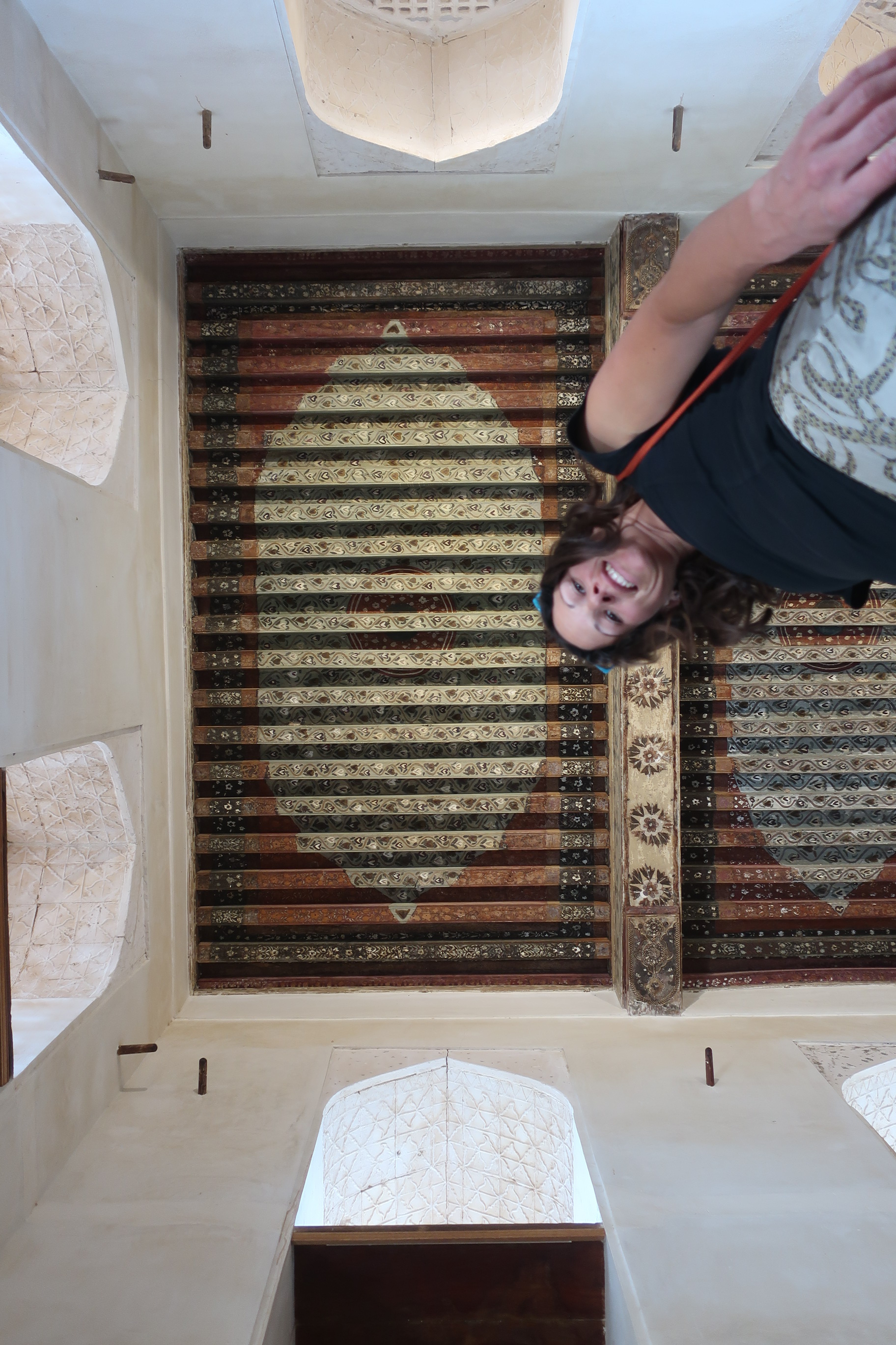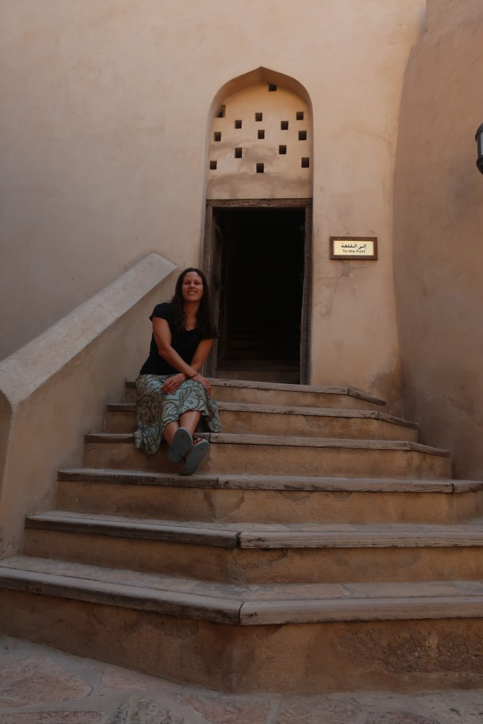 The first castle/fort I visited was Bahla Fort, it was the largest of all of them, seemed more original – still with much of its mud and grass building style visible and was a massive maze to wander around and lose yourself in. It was way cheaper (maybe 3 rial) and is a the only fort/castle Unesco site in Oman (rooms were empty but countless)…I really liked this one, soooo fun getting lost here and climbing stuff. The next one was Jibreen Castle, by far the prettiest of all of them since the inside had colorful ceilings, intricate windows and Arabic writing and design found within. It was small, 5 rial in price (with Audio Guide) and again simply gorgeous! (Some rooms had decor of the past to compliment). My favorite here was the honey date storage room! All castles had them but this was the most intact I´d seen….I loved entering because you could still smell the dates (or maybe that was just me..haha) and think it is so unique to see in a castle but really date farming is simply a huge part of the culture that is was a must…the date palms were gifts to sons and fathers taught their sons how to care for and harvest each tree…by the way Omani dates are delicious, it is the main agriculture for the country, they are the 8th biggest producer in the world and I got a whole kilo for 2 dollars! Both of these payment was in cash but if they felt bad for you, they took out the debit machine…ha ha.
