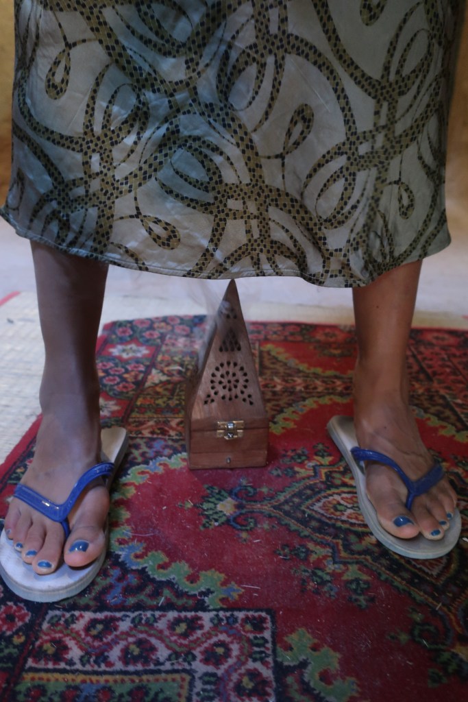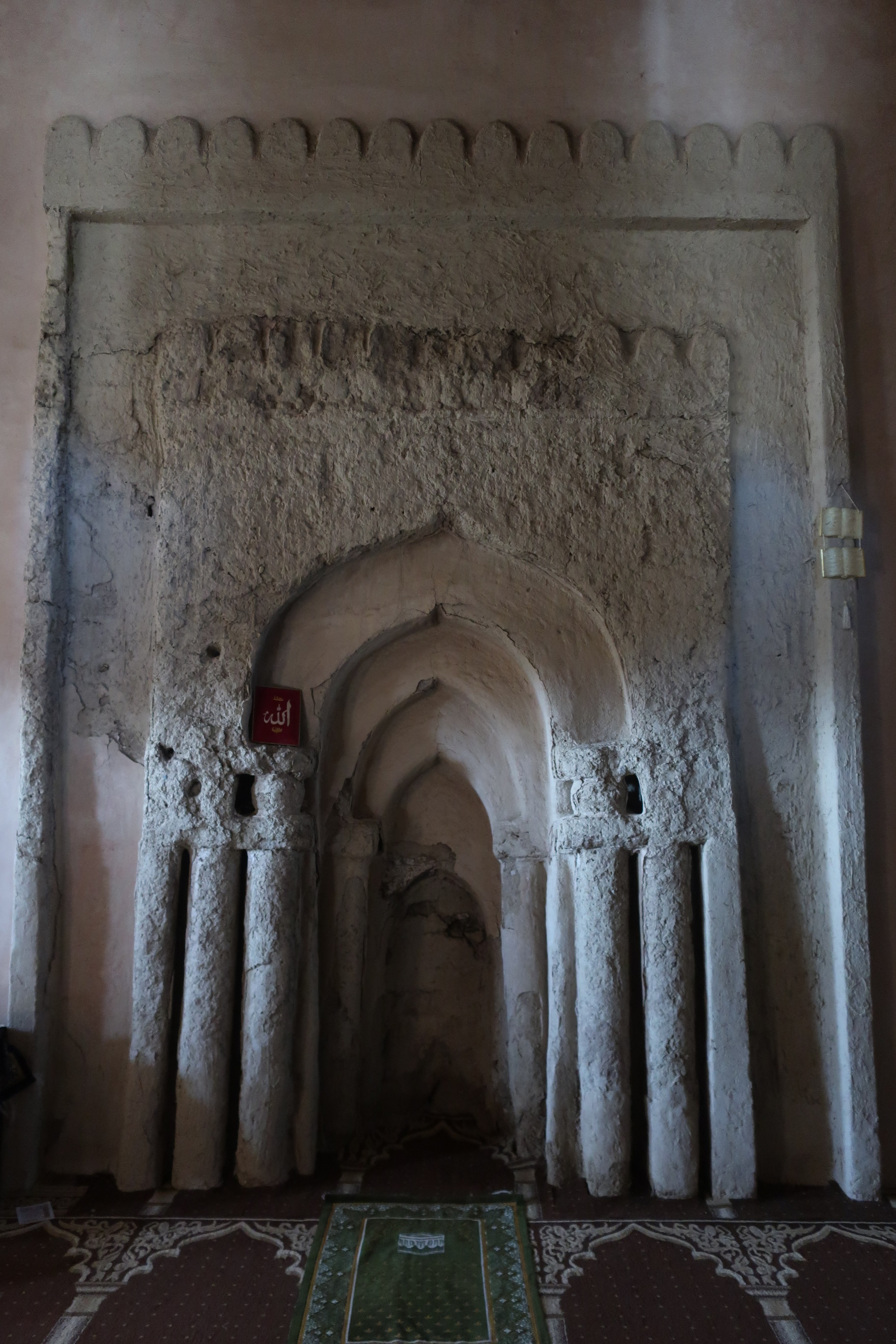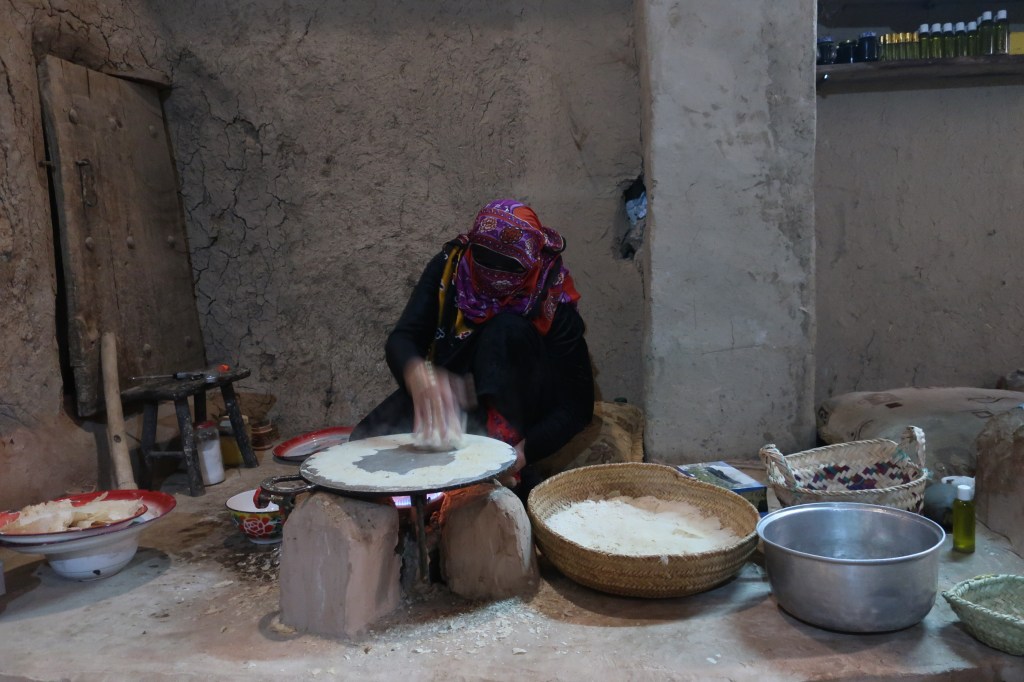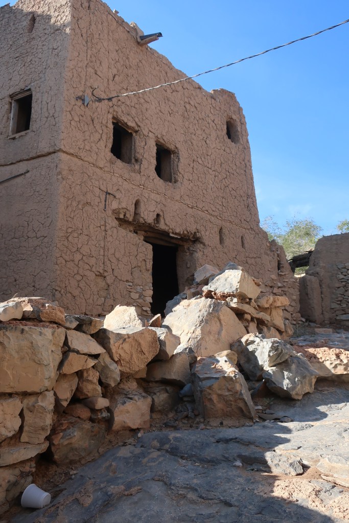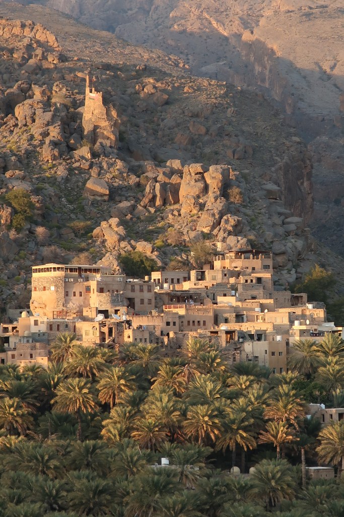 I arrived to Nizwa (2 hour drive from Muscat – for me it was 3 from Wadi Bani) and what a treat it was, not just a castle but a citadel, full of original homes and all (great for a wander). The castle had been renovated and many rooms were open with traditional objects, decor and it even housed a museum (most other castles lacked this so it was a real treat). It is the most expensive castle to visit…also the most popular but worth it. It cost 10 Rial, each rial being 2.6$ usd! The views from it were nice (especially from the big round tower); the architecture, curves, shadows and lines were impressive; museum was full of information; and well there is plenty to see and many angles to photograph. I spent a few hours inside though you can spend less, I just took my sweet time…which you should do even on a short 5 day trip. It would have been nice to stay the night here and continue to wander around but instead I did only an hour walk, had lunch and headed to Al Hamra, where I could see more intact traditional Omani homes. Once I spotted the homes across the date palm field (dates come from palm trees by the way…I had no idea!…and no it was not season – primarily June to August) I headed over wandering the streets, climbing the stairs of the abandoned, nearly destroyed ancient homes. Each was different, I loved the stairs, the nooks and crannies, different layouts and the colorful ceilings. It was sad to see the homes crumbling but also great to see what they looked like before any renovations… several were already done while others were underway to convert them into guesthouses. Most tourists only go to one renovated house called Bait al-Safah (3 rial), I also visited it and it was quite nice as you can see how coffee, traditional bread, make up and essential oils are made (I even saw some Omani women buying the oil while we tourists visited). Then there are the usual complimentary, not to be missed coffee/tea and dates offered at the end. From here I made my way to one more town, similar to this but on a hillside, a few kilometers away called Misfat…took some photos, watched sunset and then looked for a place to stay. I had decided to take advantage that I had the car and sleep in it…glad I had my sleeping bag liner on me that would be just fine (it was).