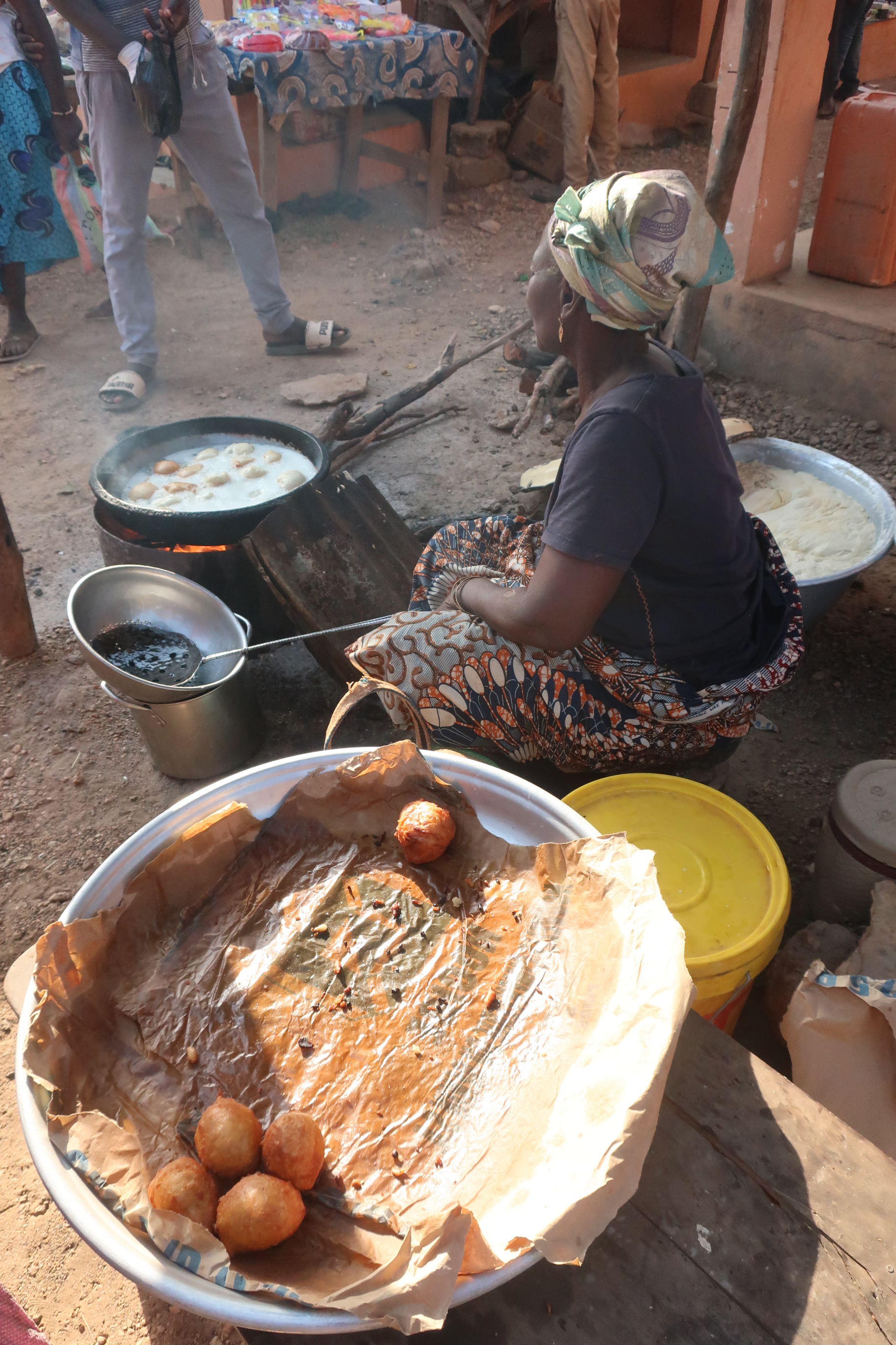 Traditional food took me some time to get used to and after almost two weeks I found myself wanting Western food instead which I never do on a trip but here I was majorly over the food. I did find that once I took a break and went back to trying it I actually had missed the flavors and way of eating. More so in Benin then Senegal you ate with your hands which I actually love…just feels cleaner (you always wash before and after eating even on the roadside stands) and it´s just easier. My favorite food was the twice boiled cheese…the best cheese I have ever had…then came the garbanzo beans with rice (the red sauce is delish!) and finally the staple of spaghetti with egg at the cafeterias….yumm. For me it was never easy to find a good spot to eat or it was hard to find something different to try. The most common plate was Fufu, which is usually yam mashed up then formed into a circle and paired with a peanut or sesame soup and a piece of meat (or the yummy cheese…you could also pay more for extra…many do). If there is one thing about the food in Benin, it was always flavorful just maybe not the breakfast (unless you added tons of sugar)….beignets (small fried donuts) were quite popular.