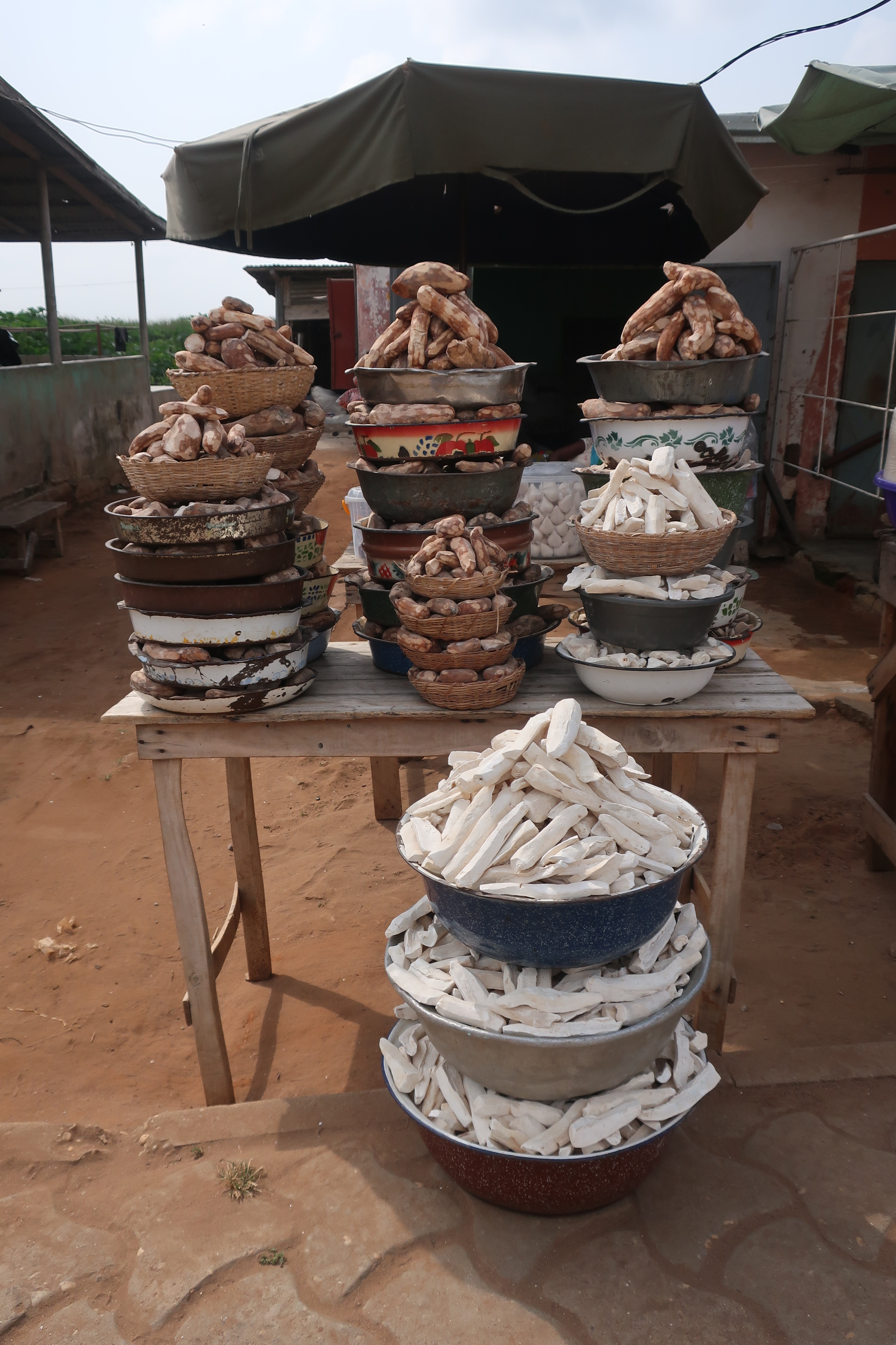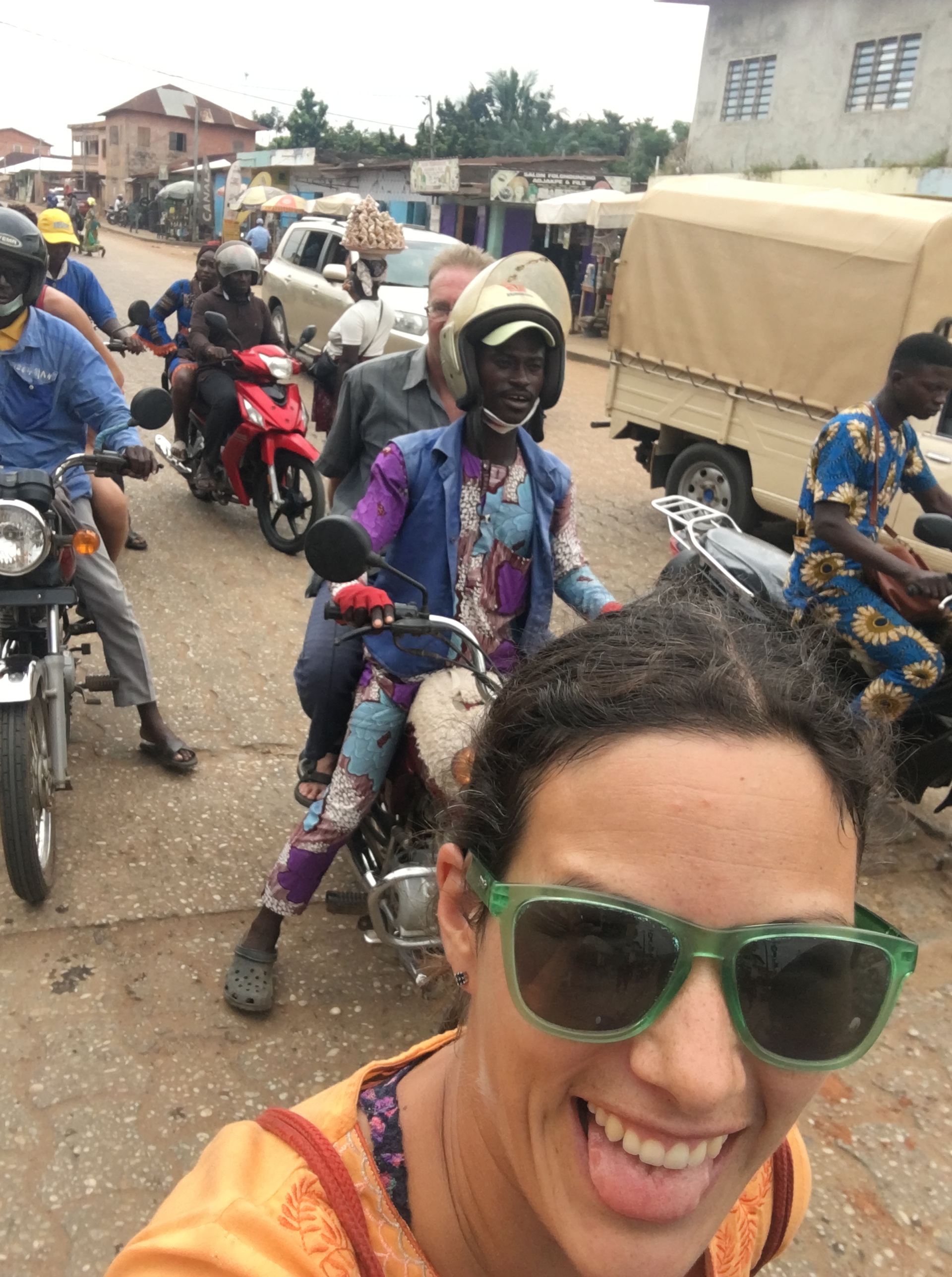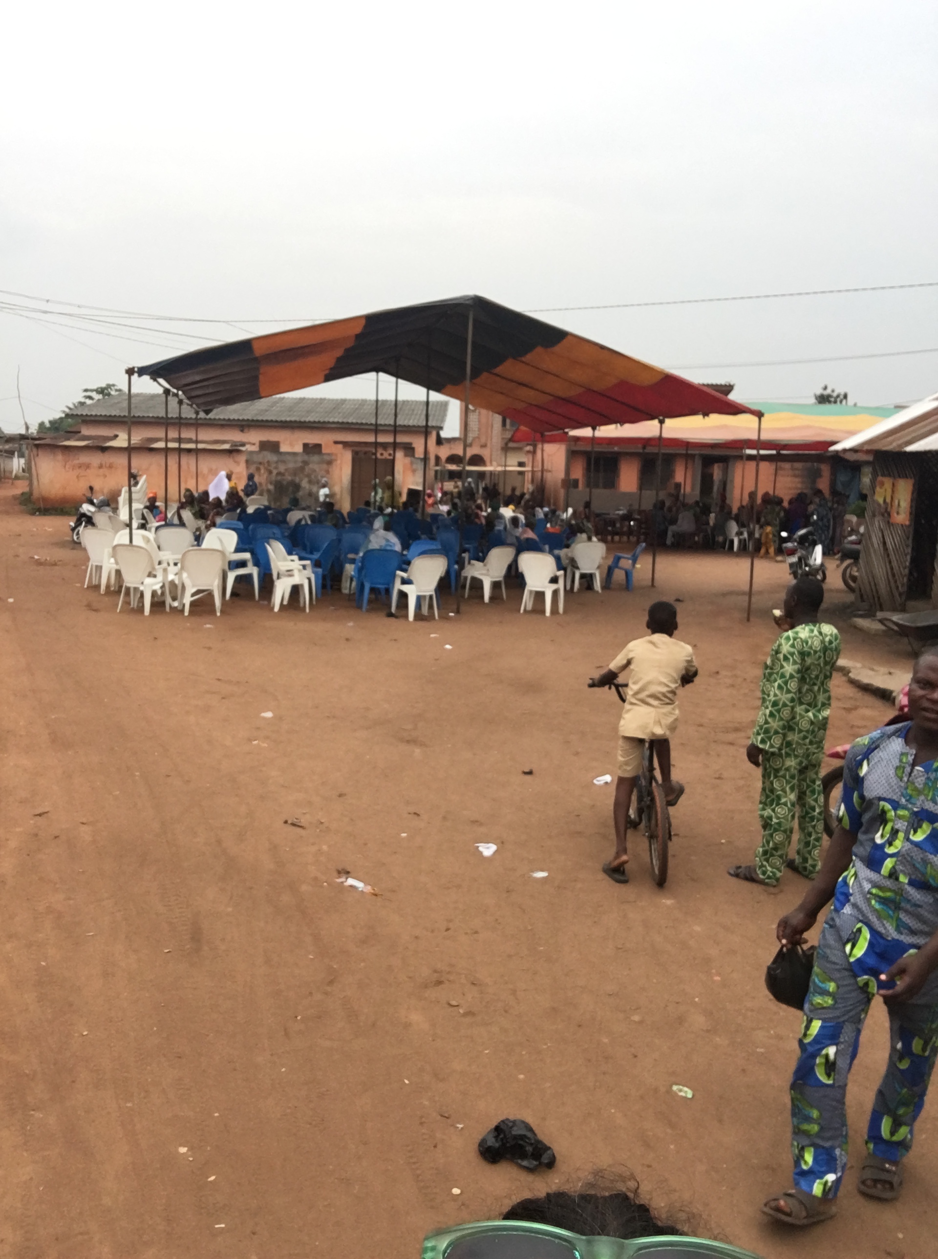 For lunch we (2 other tourists and I) headed to Adjarra, a 30 minute motorbike ride away. I had read about an excellent restaurant there on a random blog. We really had no clue where it was…so when we arrived we asked a kid, who walked us towards it and pointed us in the direction once we were close then ran off…I wasn´t listening and was the only one who understood French in the group…so we went where we thought she had pointed which had a bunch of people gathered under some tents…thinking this had to be it…a popular place, right! We walked over and were immediately welcomed and invited to join…now unsure if this was the place. Men and women ate and sat separate….but we were placed near the men despite that I was female…they spoke to us and they were happy we came. Soon some food and a friend who spoke English came over. We chatted for a long while and we were eventually told ¨this is a funeral¨..ha ha and who we were speaking to was the cousin ¨…my uncle has passed…¨, of course omg! We stayed a bit and celebrated with them and then we decided to leave…we were hungry….and well it was their party not ours. Still unsure where the restaurant was I asked where the restaurant with pork was…they were nice and directed us by pointing…we said bye and thanked them. As we left my friends laughed because it was crazy what we had just participated in and they couldn´t believe I said we were leaving to eat pork…..they were Muslim….and pork is definitely a no no for them. They weren´t upset with us asking but…might have been shocked/sad we were leaving to eat pork…This goes to show that Beninese are tolerant among religions (thank god…fyi think culturally before speaking…lol), quite welcoming, and even a funeral is a party (food was free for the whole community). By the way the restaurant had amazing food…a different fufu that was yellow and grainy…it was so good we ordered several more!