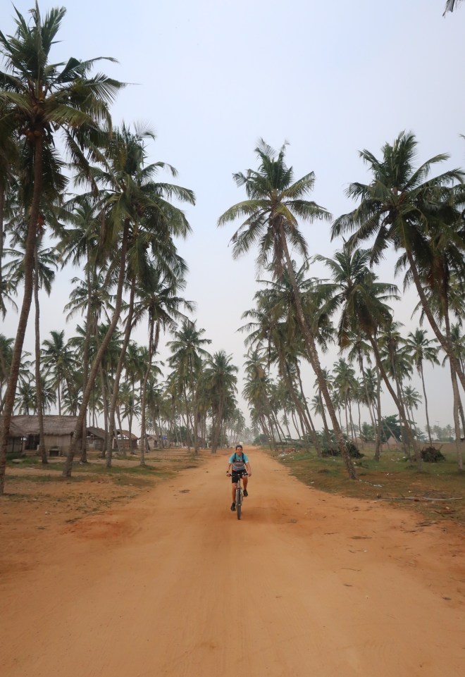 Along the way I stopped to take photos of the palm trees, the villages and the boats. I wandered around some villages exploring and even dipped my feet in from time to time. On the way back I stopped even more. This time jumping in the ocean (it was hot for the return) only to get tumbled around quickly over and over again (very strong currents and lots of waves…) staying within the line of dangerous and fun! I watched the whole population of fishing villages appear on the shoreline to fish…pulling large nets out of the sea for hours and picking off the small fish to later eat. I spoke with some out picking fish off the net and they said everyday from 6 am until what would be 11 am when I saw them, they work the fishing net to get their meals. Being the weekend one guy I spoke with was a university student and said he comes home some weekends to help too. It was very impressive to watch…netting lay from one end of the beach to nearly the other side of the village (mind you villages are tiny) even twisting here and there. It seemed a palm tree or two was what anchored the net on land to a boat off shore. So crazy to stumble upon and witness a whole village come together to work for the greater good of the entire community.