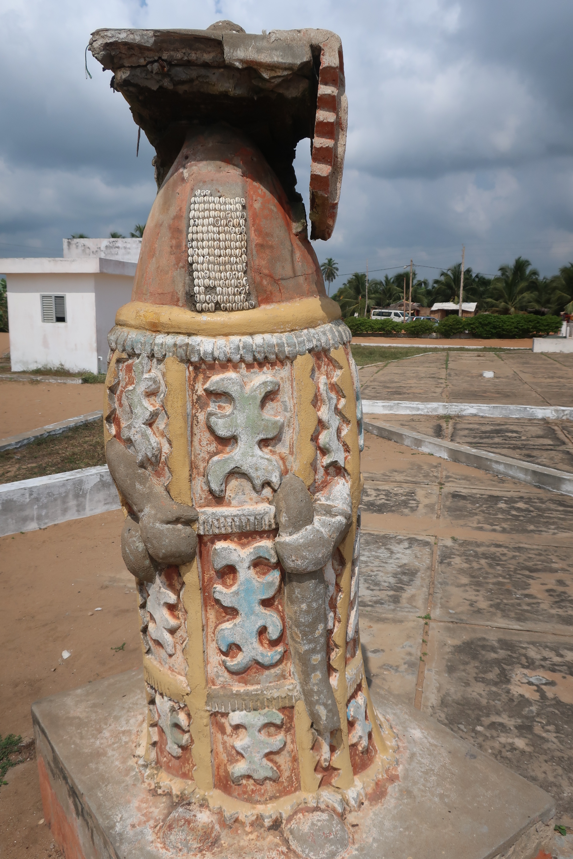 My day in Ouidah was filled stopping at some of the voodoo and artsy sites. Before doing any of that though I needed to eat…as usual it is hard for me to find places with something different…I tried several and I avoided where all other tourists (most tourists I ever saw in Benin was here in Ouidah…I think 5 total) seemed to be going. Finally though someone told me where a good place was and it was great with authentic lunch on the street where everyone around me was surprised I sat, joined them and ate with my hands lol…since I was obviously not from there. This place was packed; nearly had a line, and served delishious food! So happy I waited it out to find the best place! I even bought cotton swabs from the kid selling them…finally I understood why they sell those things randomly at unusual places…hey, when ur out and they sell what you need while u eat…you got to get on it!