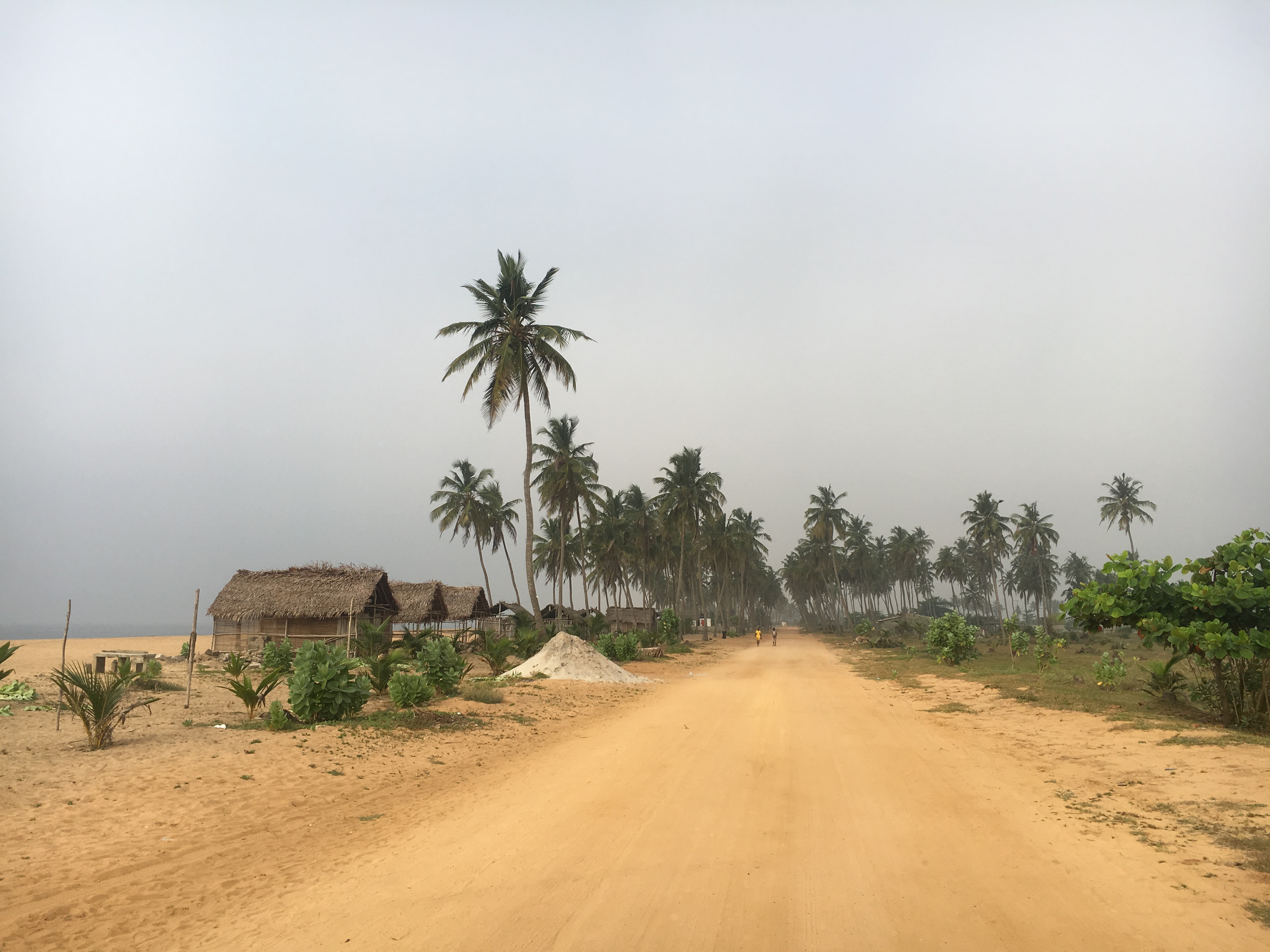 I set off early in the morning to avoid the heat and was pleased to find a cool ocean fog coating Cotonou…I also went early to avoid traffic; the roads normally have tons of motorbikes and cars…thankfully it was the weekend and roadways were nice and clear (Sundays in Cotonou…the city is like a ghost town). It took 2.5 hours to arrive to the beach near Ouidah but really I took another hour with all my stops. It was such a joy to cycle and explore that I stopped a ton to look at the fishing villages along the way, take in the rows of palm trees and enjoy the emptiness of the sandy road all to myself (except the occasional motorbike, villager and random car).
