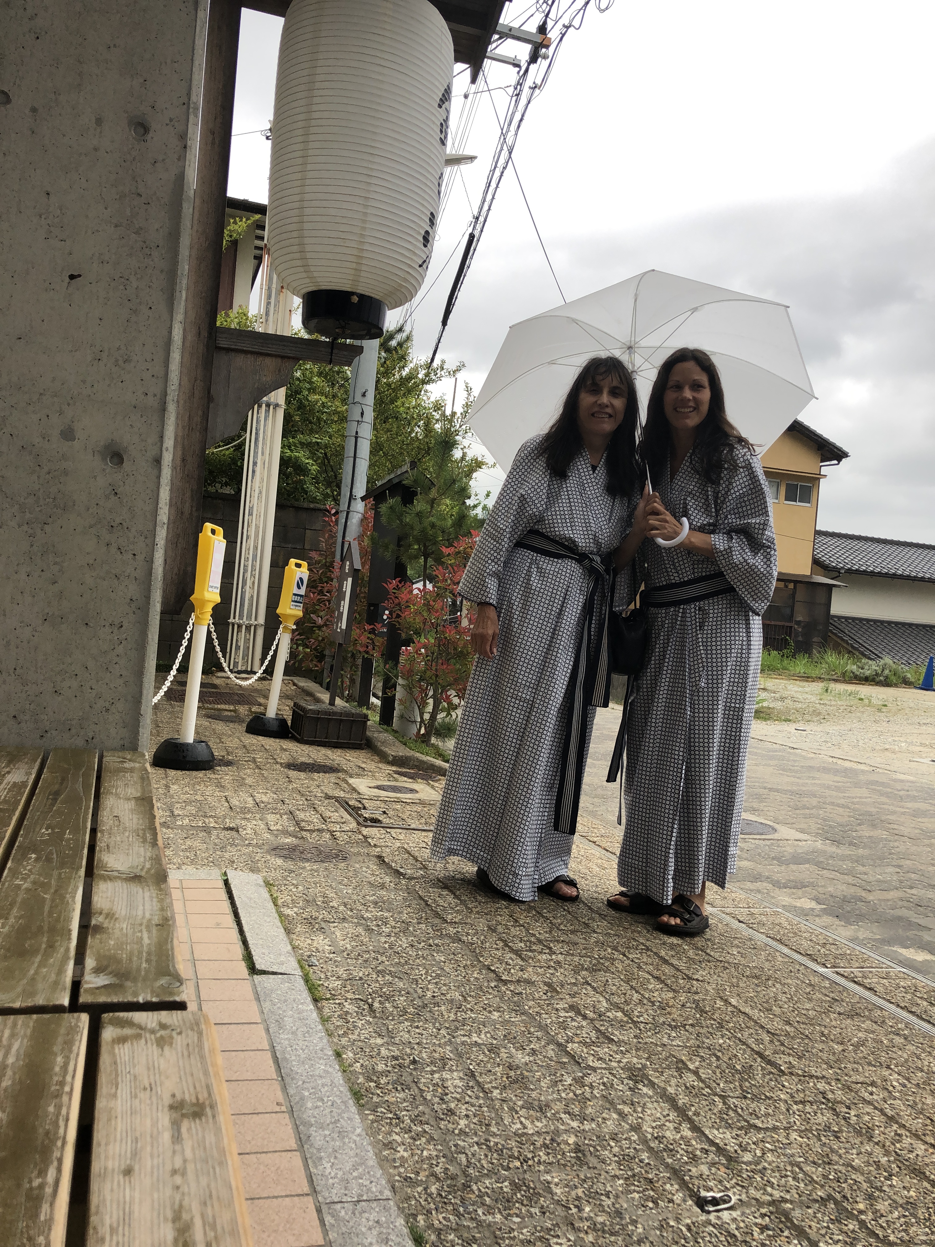 From Kyoto I didn’t have any idea where we should go but since her interests differ she researched what she thought Japan was known for and that she liked…hot springs came up and so we were headed to an Onsen :). While she had the idea I researched how to get there and where it was which for us was Arima onsen, not too far away. We took a bus (approx. 1 hour) and spent a few days in the mountains (it is actually just behind Osaka and Kobe). My mom didn’t research enough though because at the onsen the Japanese go naked and she wasn’t having any of that lol (I did…mention…to her that I had heard about the nakedness). The first onsen we visited she went in with her bathing suit (women and men each have a separate side), I would have joined with my suit but I saw no one else like that so per usual I adapted, I went bare naked too, while my mom was quickly kicked out after 10 minutes lol. We spent the rest of the day outside the other onsen soaking our feet in the free hot springs there lol and exploring a bit of town in the rain. The next day we tried another onsen in town, a more upscale one…it worked, there no one bothered her about the swimming suit, but they did look at her wondering lol. It was an interesting experience to do the Japanese onsens ha ha being naked next to my mom felt odd at first but more so were the conversations with other Japanese while naked ha ha until I saw past it and started to enjoy how cool it was that because you were also naked like them that they talked to you…ha ha yes, simple conversations even in Japanese could be understood and all while enjoying the onsen naked… no one stared. The ritual for getting in them is also quite interesting, if you have never been…first you take shoes off…then elsewhere strip naked (lock all belongings except a tiny towel in lockers provided)…enter onsen area…before entering water you must sit and shower thoroughly in front of basically a vanity mirror then finally you get in. Yukatas, aka robes, are used often between locker rooms or even walking around town to the onsen (usually in sandals). Some have creative dipping areas…in the last one I loved the round copper tub all for you and the sauna to cold water room (clearly I tried all available options).