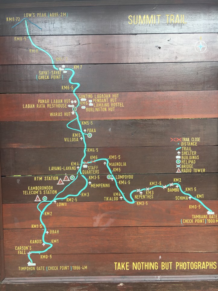 Besides the somewhat difficulty in getting a permit I also debated the cost. The hike was 2 days minimum, doable in 1 day but they only let you do that once a year, racing up to the top. Most do 2 days but 3 days was an option and I would have loved to do the traverse Via Ferrata on the way down but that was over 1000$! Just for 2 days you can pay up to 600$, all dependent on what company you go through. I payed on the lower end but still thought costs were very high! I felt better knowing lodging, all meals and even the motorbike were included for me in my permit cost. Sure shows you that costs truly are high when all these other costs were included, given I stayed 4 nights with them. I even tried to pay for the extra nights I had before committing to climb Mt. Kinabalu and going through them because usually a night before and after is included in the permit process with them but I had 2 additional…any who I was happy.