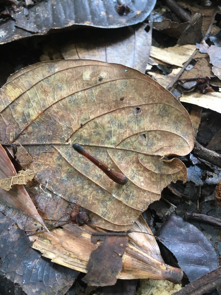 The trail was a bit moist still from all the rain which got me worried about leeches given I was wearing shorts (hot and humid is Borneo). I passed only one couple along the entire trail and they confirmed my worry advising me that they had seen plenty of leeches and to watch out. I now found myself checking every 10 minutes…especially after I passes wet spots on the trail. I did find some on me but they only ever made it to my shoes which I would quickly flick off. Most were teeny tiny but the 1 bigger one that got on my shoe I found to be very quick and smart…he seemed to know the drill for getting blood and survival. 😉