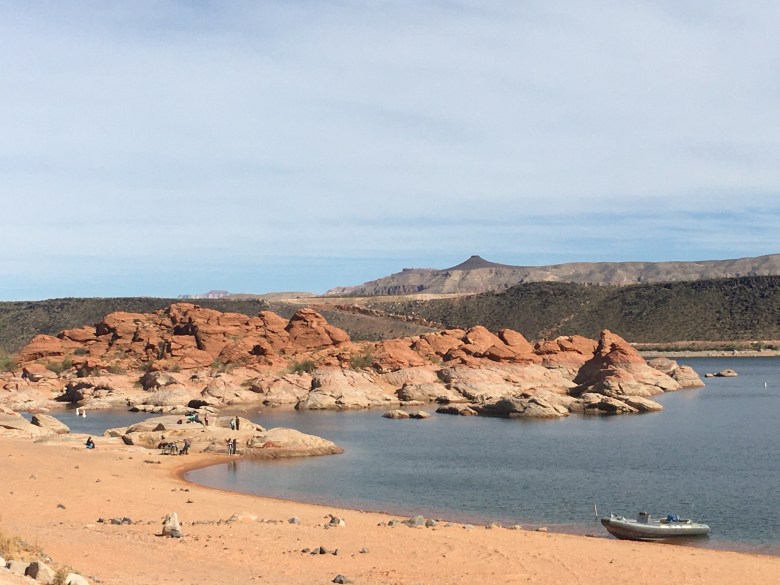 The swim was set at a beautiful reservoir outside of town. The weather in St. George averages at 70/80 degrees for October with water temperatures averaging 72 degrees. Given this information I decided to leave the wetsuit…I could have had my support crew (parents) bring it but I decided I wouldn’t need it.