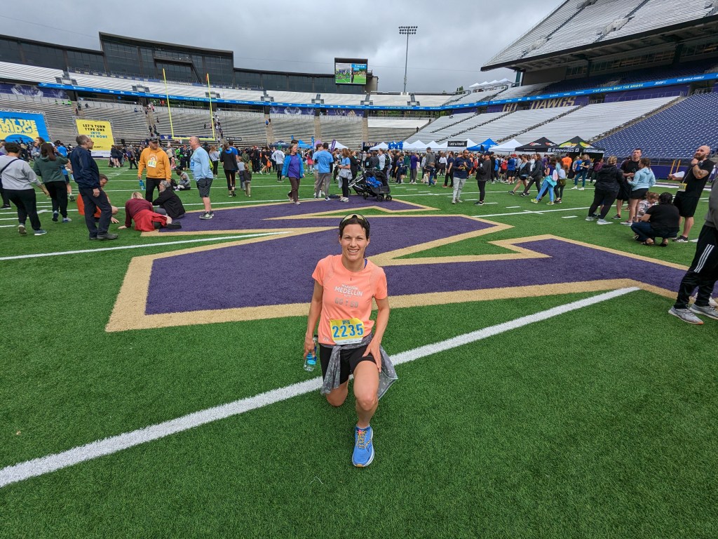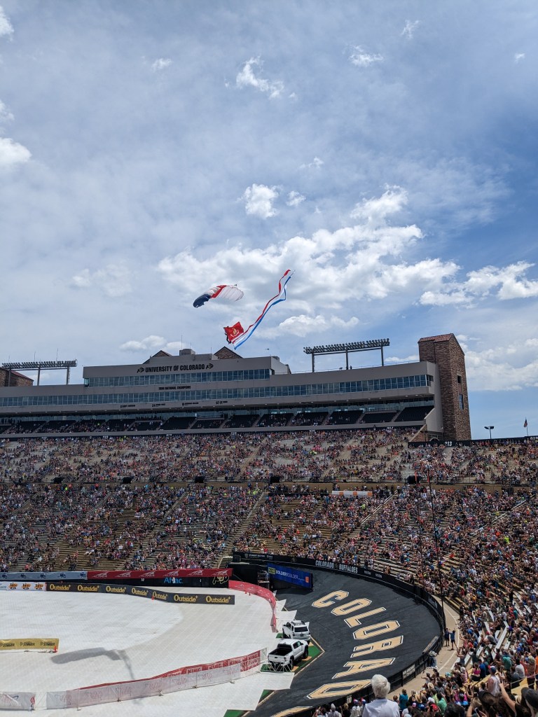 This was the second stadium finish for me in a week! The week before I raced at home in Seattle the classic Beat the Bridge 8k race with it´s finish in Husky Stadium (U of Washington). Now this week I found myself in Folsom Field at the U of Colorado! The same back problem plagued me last week too…as it has been a two week event now.