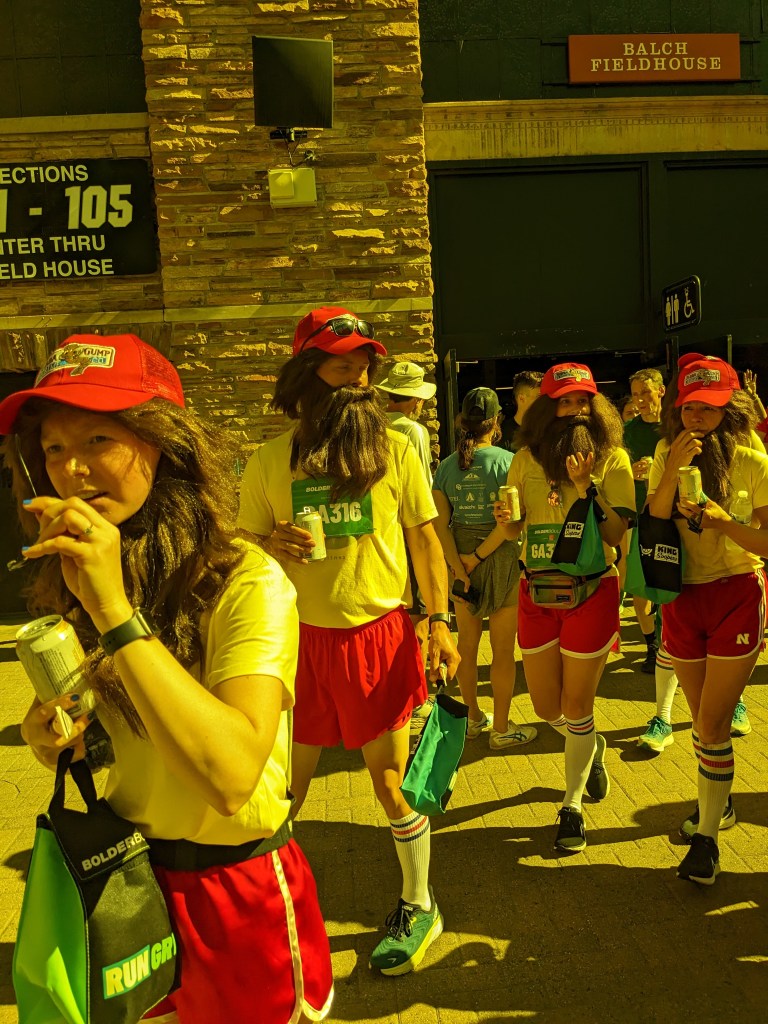 Three miles in I could at least relax some because I knew if I walked I was half way done. Walking in this race was totally normal because the race is filled with people of all ages and abilities, costumes and just so much going on along the route. Probably the most fun 10k I´ve ever run. Boulder is a college town and a sporty high altitude training ground. Plenty of speedy runners do this somewhat flat course but also BolderBoulder has nothing, yet everything to do with running. The route has many turns and a hill at mile 4 that a friend warned me about but otherwise it is pretty flat. This race is actually more of a community affair. The 40,000 plus runners come out for a good time and boy does the race give that to everyone! There are bands along the route like in many races but because the route goes mainly through residential neighborhoods there are tons of garage band type music offered literally everywhere (plus piano, bagpipe, conch shell, etc). To top the music off there is a slip-n-slide, alcohol shots on tables, llamas and just way to many fun offerings you don´t want to pass by just running it. All these things along the course distract well because before you know it you are at the stadium and almost done!