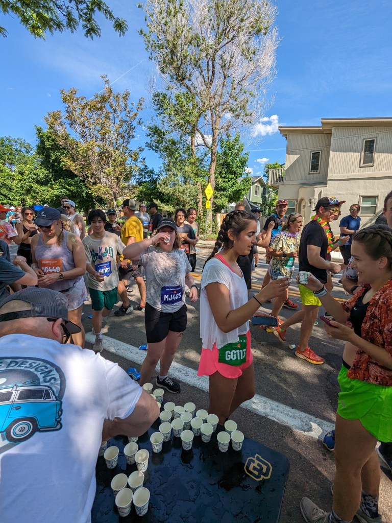 I forgot to mention, runners in the earlier waves hold a tradition of running it twice, the first speedily and the second one more of a fun jog to enjoy the literal party on the streets. Well I am not sure how many actually do this….my friend did…. but I´d guess a good chunk also do…because you obviously don´t want to miss the slip n slide, free drinks or bacon…duh! Plus, if you are fast there are extra surprises for those who race in a time under 40 minutes….I might have to take up that challenge next year when my back is better!