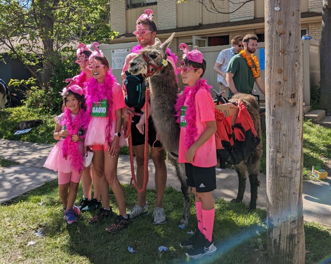 Three miles in I could at least relax some because I knew if I walked I was half way done. Walking in this race was totally normal because the race is filled with people of all ages and abilities, costumes and just so much going on along the route. Probably the most fun 10k I´ve ever run. Boulder is a college town and a sporty high altitude training ground. Plenty of speedy runners do this somewhat flat course but also BolderBoulder has nothing, yet everything to do with running. The route has many turns and a hill at mile 4 that a friend warned me about but otherwise it is pretty flat. This race is actually more of a community affair. The 40,000 plus runners come out for a good time and boy does the race give that to everyone! There are bands along the route like in many races but because the route goes mainly through residential neighborhoods there are tons of garage band type music offered literally everywhere (plus piano, bagpipe, conch shell, etc). To top the music off there is a slip-n-slide, alcohol shots on tables, llamas and just way to many fun offerings you don´t want to pass by just running it. All these things along the course distract well because before you know it you are at the stadium and almost done!