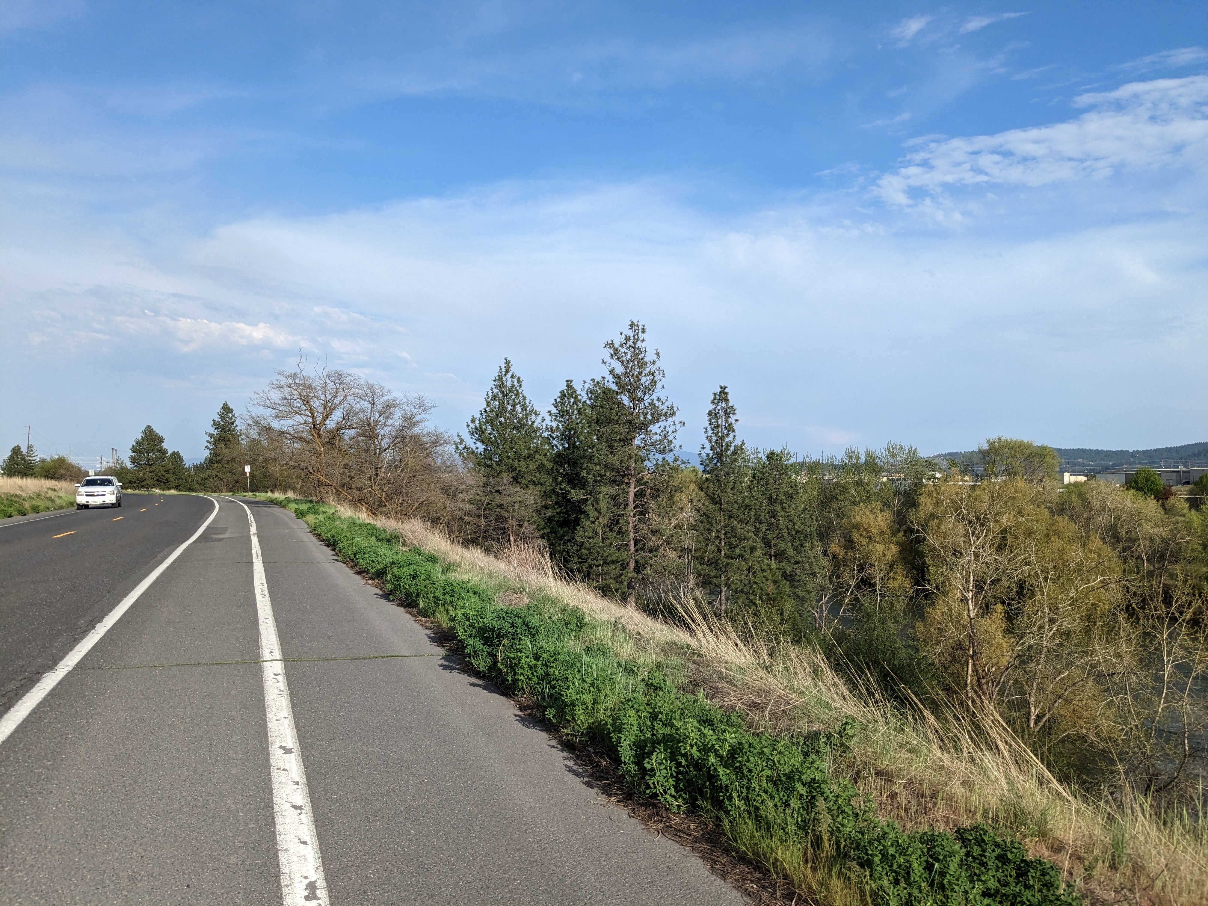 The wide spring time Spokane River made the trip extra lovely as there are many parts where you ride literally along side it and even a few crossings. It was nice to be away from the busy roads almost the whole way and taking in the scenery. My favorite spot along the trail was an viewpoint that overlooked Post Falls in Idaho. It was gushing so much you couldn´t take your eyes off of it so I had to head over to the actual park to see it up close…it was only there that I realized a dam is built here to control flow. Either way springtime views of Post Falls is quite impressive!