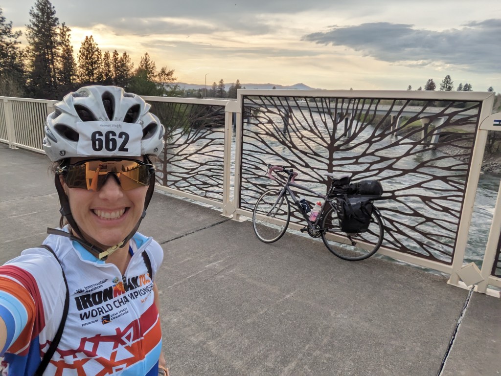 Basically once in Post Falls I took the same bike path the rest of the way back. The only difference on the return is I added about 10 miles and went even slower. The 10 extra miles were from exploring or shall I say revisiting the cute town of Coeur d´Alene (which is a must) and from biking through Spokane over to Riverside State Park (highly recommend this area to ride) where I camped the second night. This part was somewhat hilly yet fun, just above the river and seemed to attract many cyclists, which I totally understand. To arrive I went down a huge hill, which was the Doomsday Hill for the race. As I cycled down it I thought, ¨woah, where did this steep hill come from…, wait, is this the hill they speak ooooof?¨, maybe not the best news but at least I saw it before hand. The State Park had great but basic amenities and had tons of hiking trails across the Bowl and Pitcher bridge. I must say the river was moving very fast under that bridge…you would not want to have fallen/jumped in!