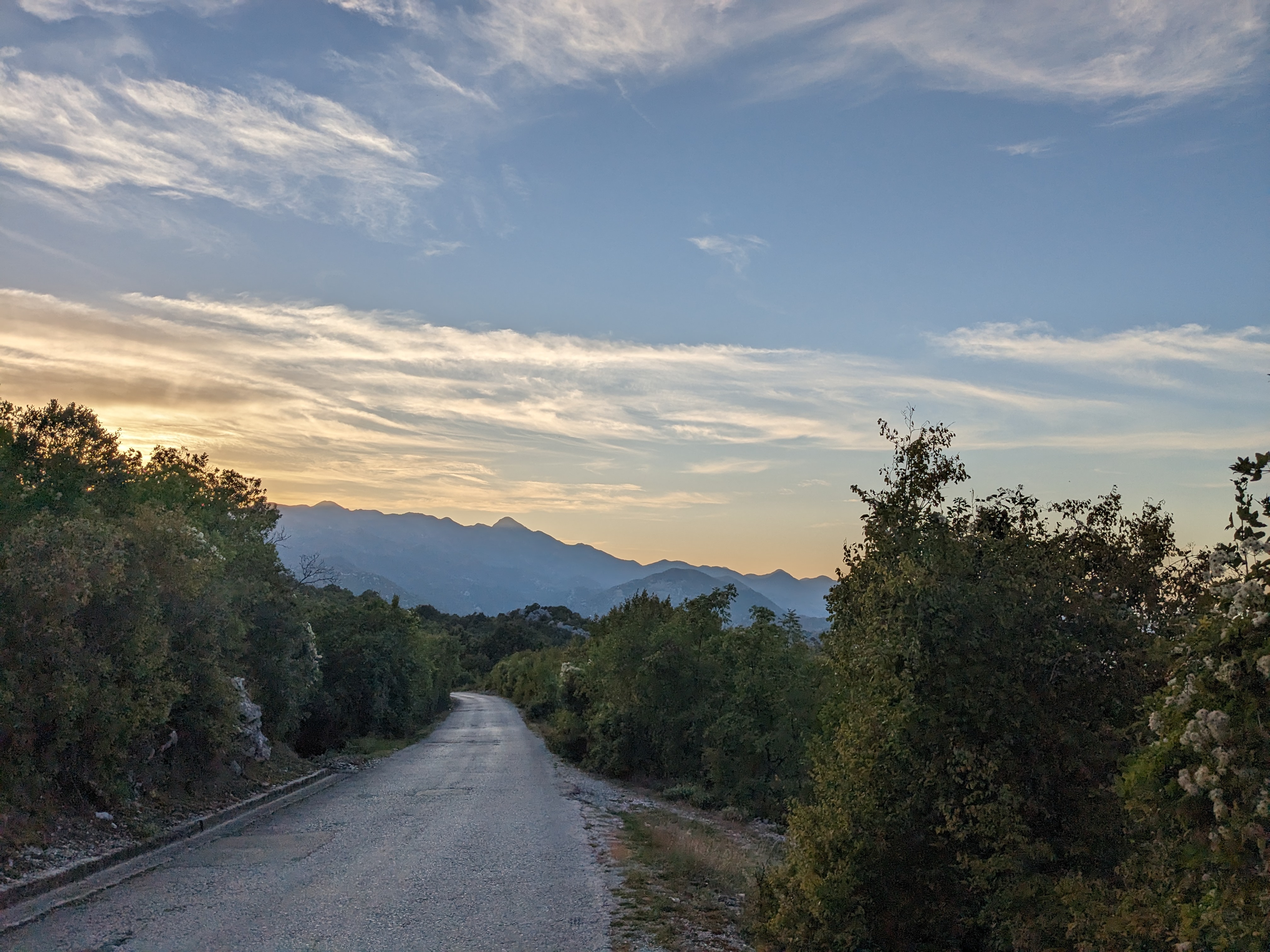 The second time wild camping on this trip was in Montenegro just before exiting and entering Albania. I thought I would make the border this day but I failed to check the elevation of the route. It was along a big lake that I heard was beautiful for cycling. It was indeed beautiful but it was also super hilly! I had already went over a mountain pass to start the day so by the time I added in the hilly lake route legs were pretty much left with barely any energy…finito; done; spent! I still had a ways to go so I decided I would just start looking for a spot to camp.