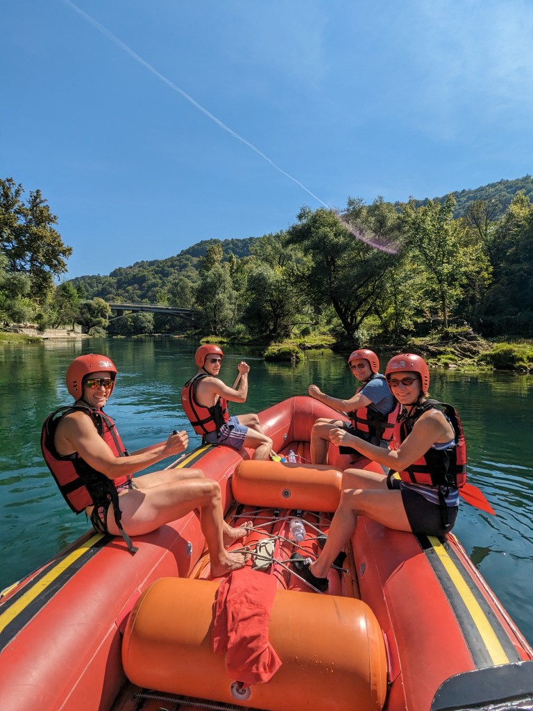 The Una River is clear and green and wonderful so the slower rapids in September were mainly leisurely. I joined a family of 3 who lived and worked in Sarajevo but were originally from Germany. We had a great time riding the rapids together and once we got the bigger ones done we jumped in. It was absolutely refreshing! I´m not one to jump in so quickly but I was hot after the effort and had zero trouble letting loose and jumping in multiple times!