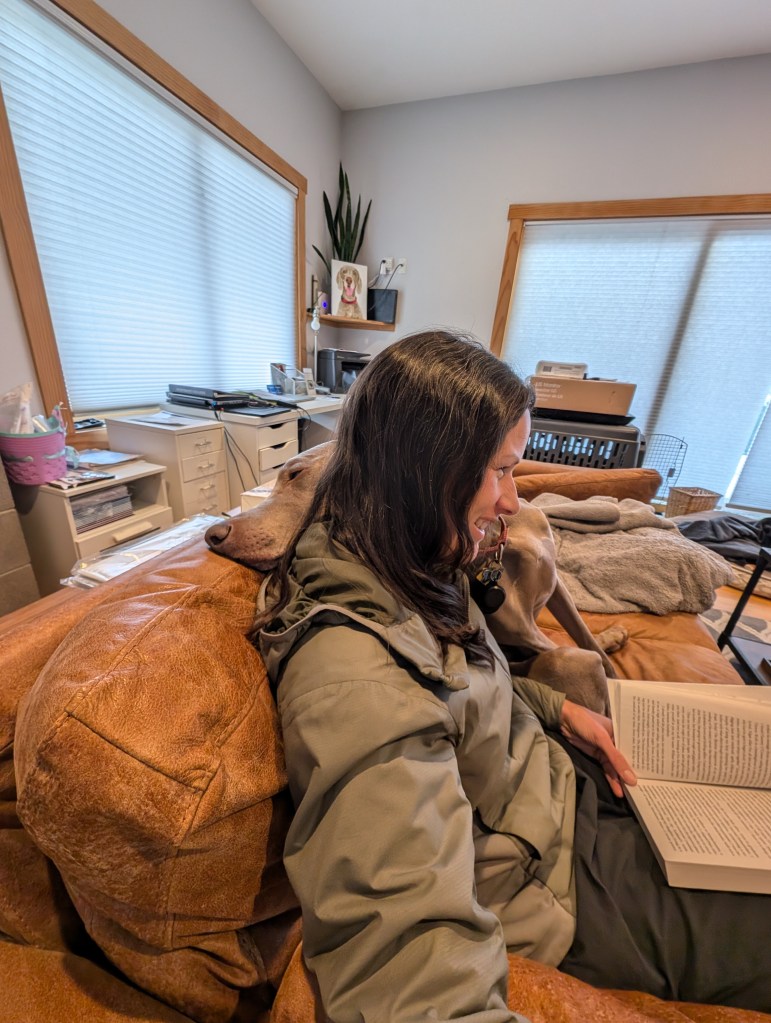 Weimaraner Blu – I was super excited to sit for Blu because I like to run and the Weirmaraner breed is one I´ve looked into having for a running partner. Weirmaraners are big energetic dogs. He lives in a city and could probably use 4 walks a day but obviously no one can give him that, not even his owner. Since he is a big dog walking him was a bit of a struggle as he pulls a lot and goes quick because he is energetic. What I didn´t know is Weiraranaers are called velcro dogs and they want to be as close as possible to you, yes often laying on you to be close but generally leaning hardcore into you.