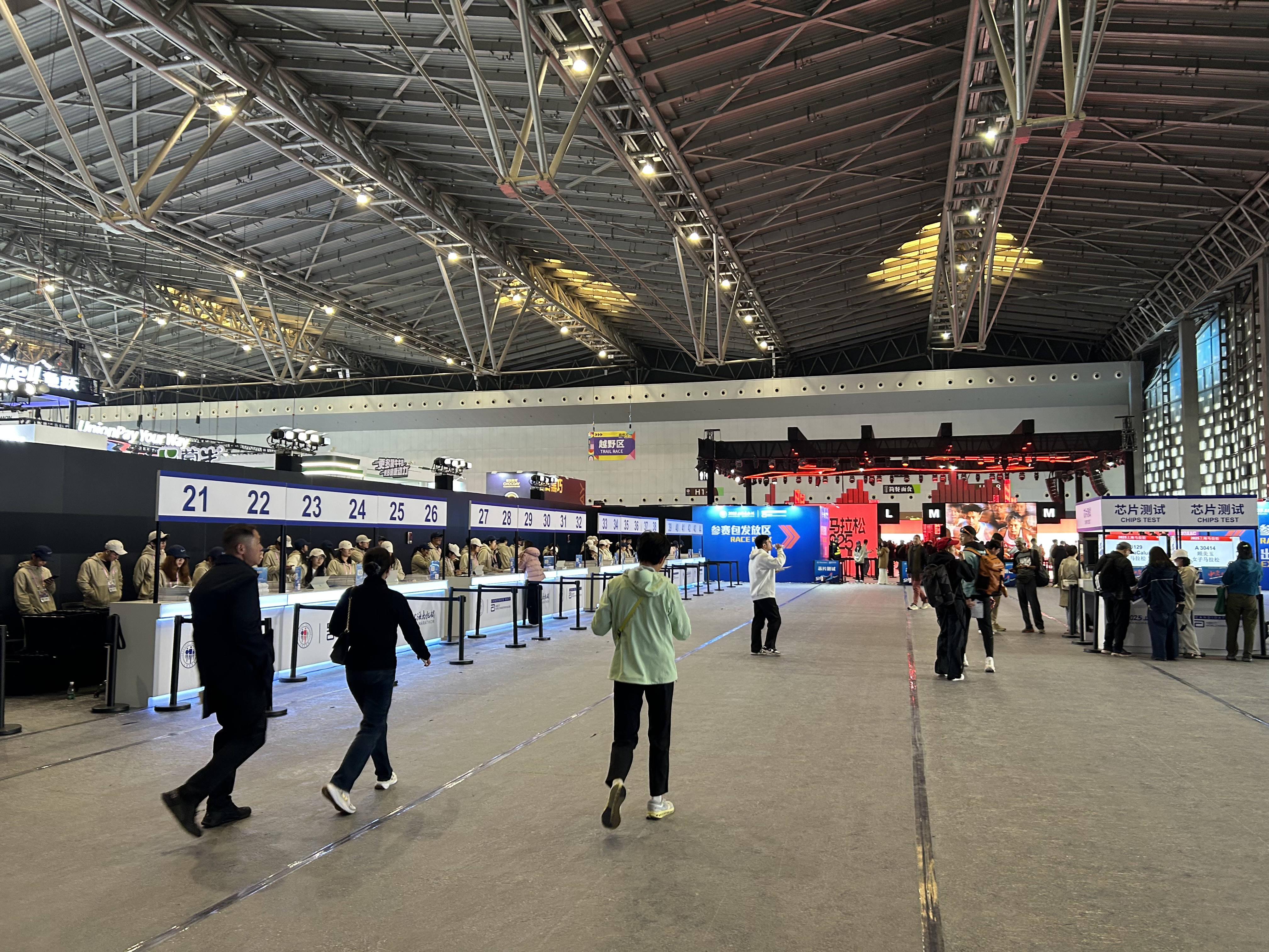 It was in a big hall at a convention center. Participants had a special separate entrance because IDs were checked and faces matched or photo taken (if foreigner) before entering. All others could attend too but entered elsewhere and were sent directly into the race expo and into the extra running expo going on all at the same time across the hall.