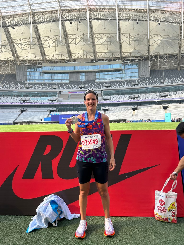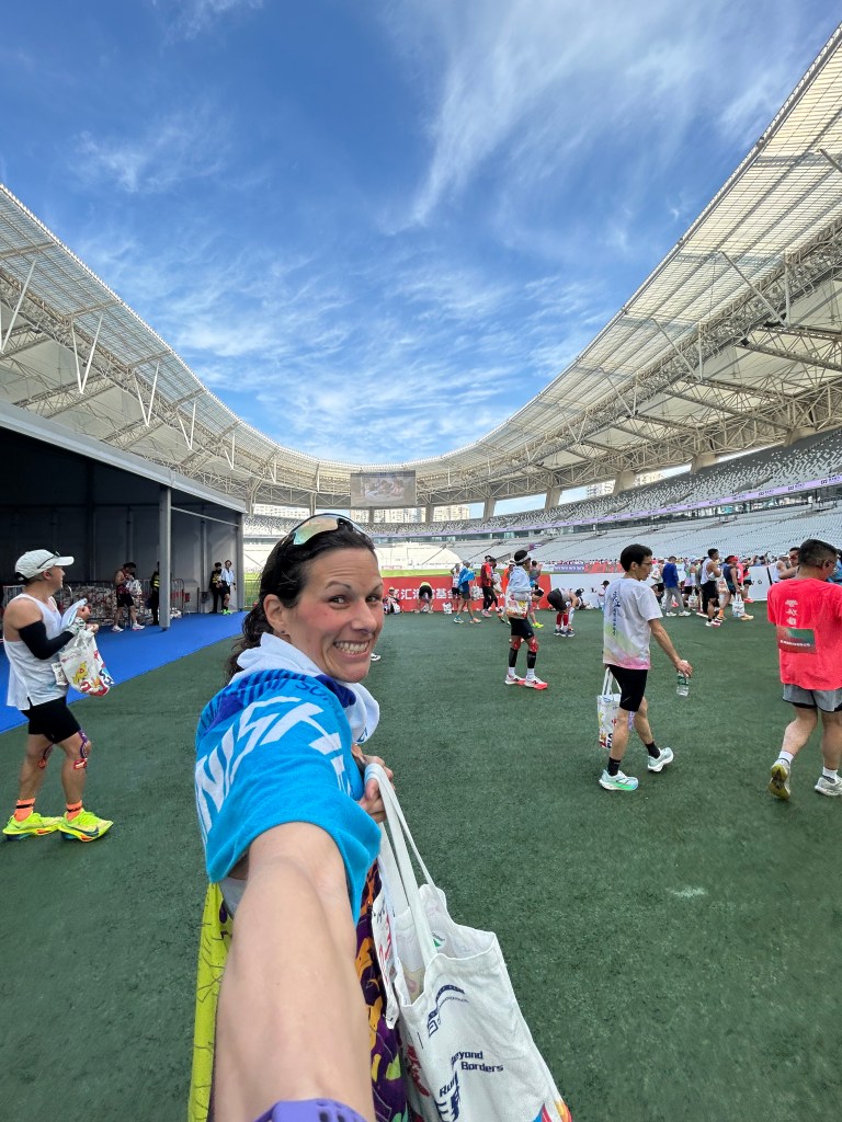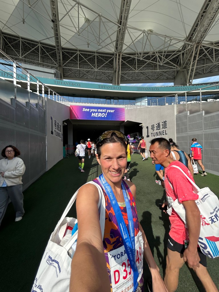 We finished outside Shanghai Stadium which was used in the 2008 Olympics and is home to Shanghai Shenhua FC with 72,000 capacity. Needless to say we got to walk through the whole stadium (all the way around the inside) lol. Maybe a bit extra for some runners hurting to walk but in general it was nice “me time” to walk it off after 42km.