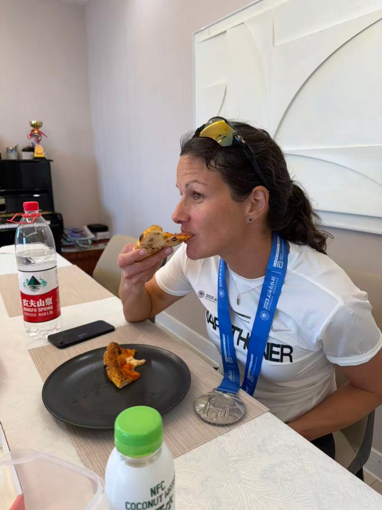 Cheering along the course. I didn´t feel it was lacking and I know I saw groups and plenty of spectators on the second part of the course but I think just having that many runners to weave through and running with a massive goal to focus on I didn´t pay much attention to if the crowds were good or not. I did learn a new word in Mandarin though running as I heard it enough— Jiayou! (加油) — ¨Jah eye oh¨ meaning ¨Go for it!¨ everywhere!
